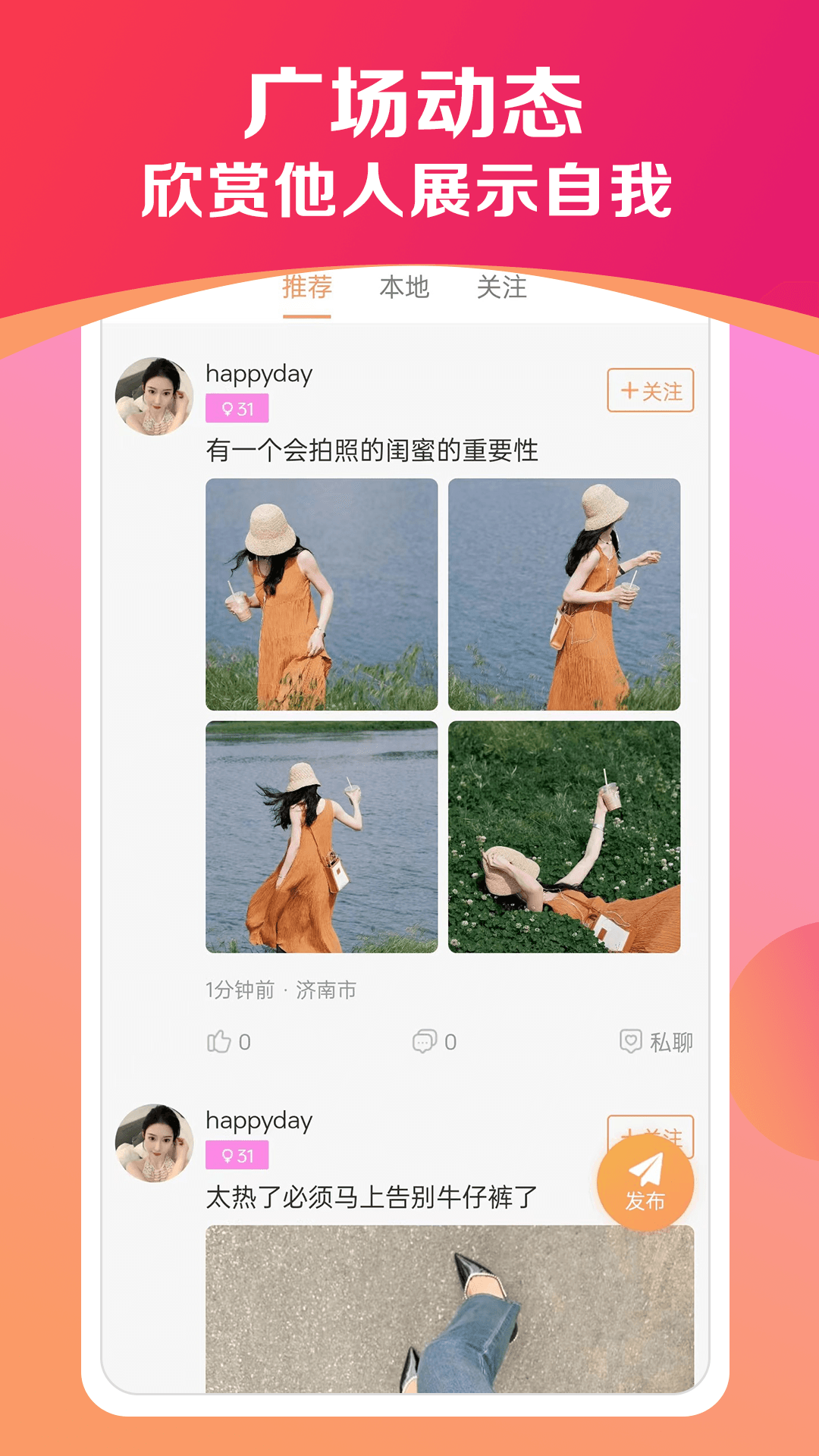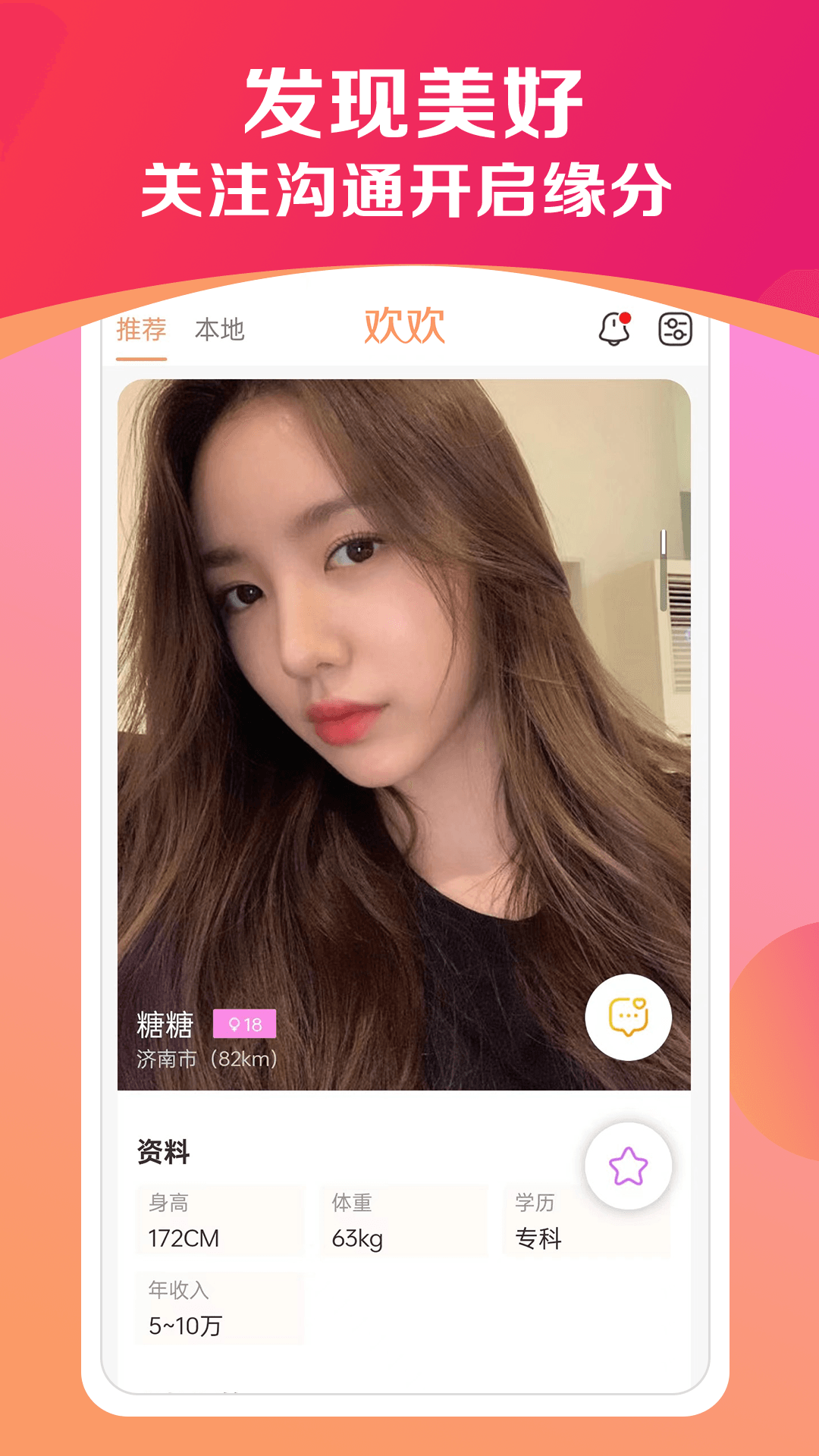 欢欢约见,这是一款以约会为主题场景的交友APP。它是专为单身青年打造的交流平台,在这里,众多的单身青年能够获得彼此交流的机会,从而增加找到心仪对象的可能性,是当下深受年轻人喜爱、颇为流行的社交舞台。