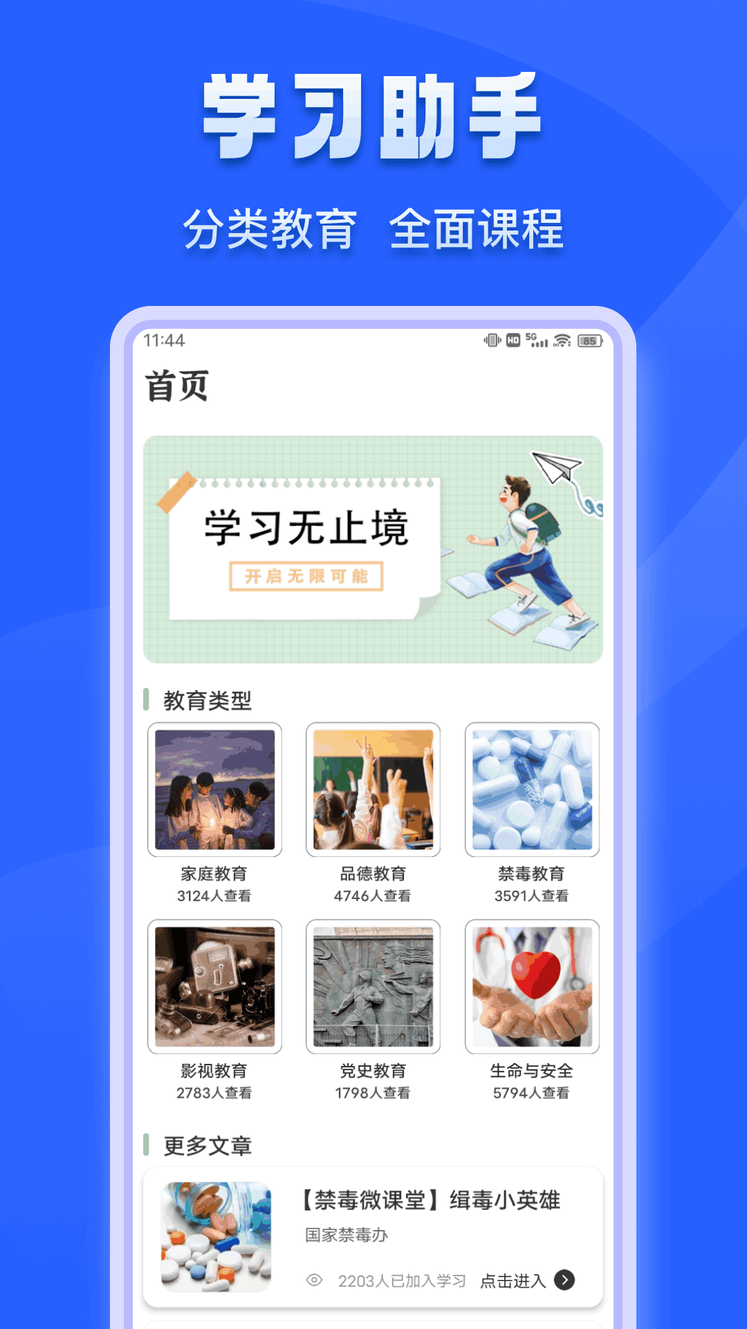 为深入推进教育数字化战略行动,全方位提升全国基础教育数字化程度,让信息技术与数据在提升基础教育服务及治理水平方面发挥充分作用,进而提升师生和家长在教育数字化进程中的获得感,我们在其中融入了家庭教育、品德教育、党史教育、生命与安全教育等丰富内容。在这里,你能够边打卡边学习这些内容。另外,还包含身心健康教育资讯内容,这里的资讯精彩纷呈,期待你来体验!
