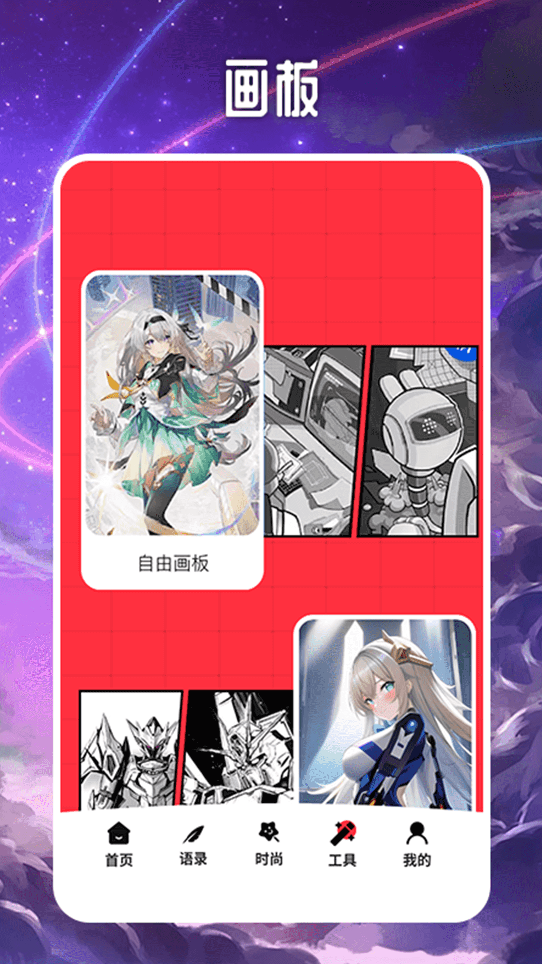 此绘画板提供多种类型的漫画绘画模版,你可以使用在线画板对其进行临摹。这里还配备了漫画创作工具,让你能够尽情地发挥想象力,自由创作属于自己的漫画。