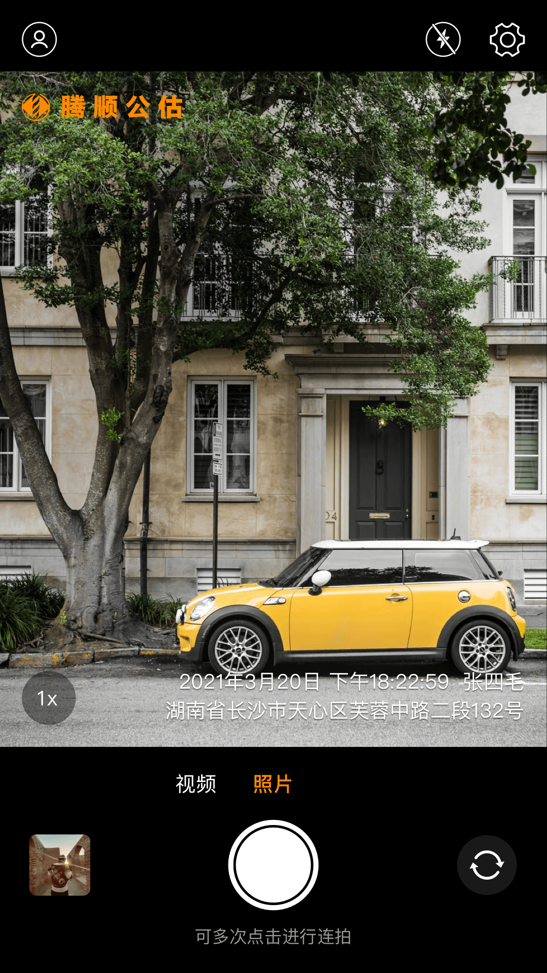 此应用是一款加水印功能的拍照和拍摄视频的APP,应用于公司内部,不面向普通用户,且按照国家政策,应用中的功能只有专业的人员才被允许使用。此应用不提供注册功能,账户来自于应用程序“腾顺保险”,且仅公司有专业能力的员工能够使用,否则不被允许查看应用内任何内容。