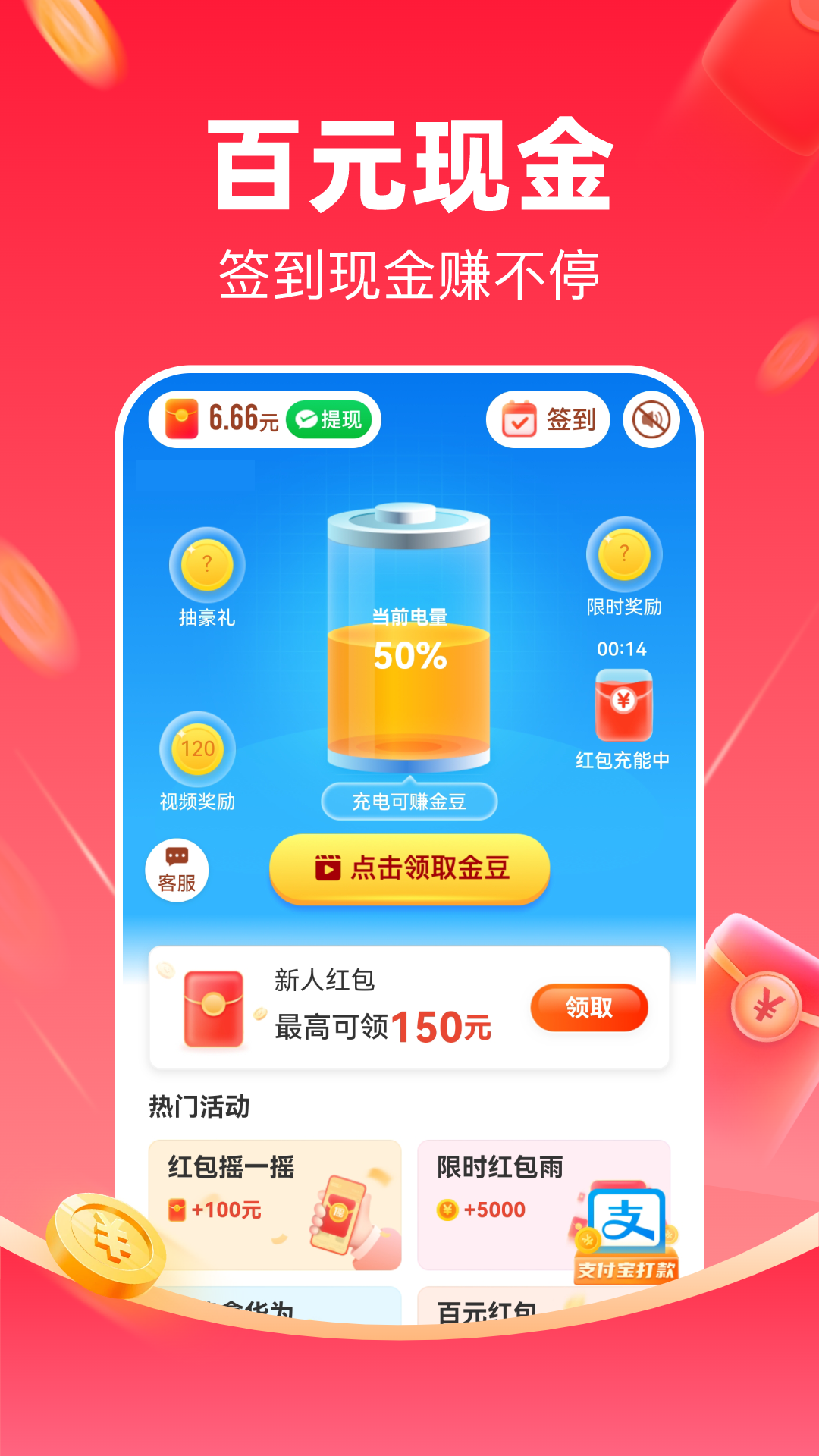 提现灵活:积攒的现金或者兑换后的金豆都能轻松地提现到您的支付宝或者微信账户,实现对资金的自由支配,方便又灵活。