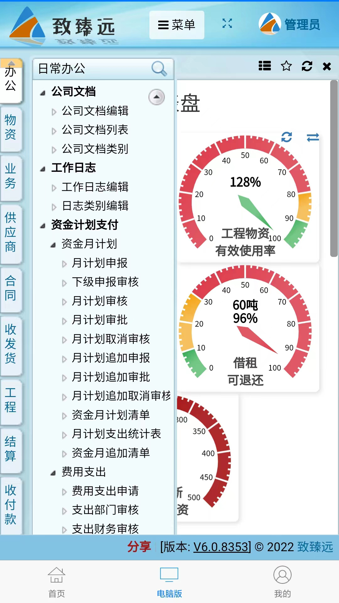 致臻远管理软件主要包括企业物资管理,租金计算,工程管理,企业流程管理等,除基础版外都可以设置多人,多仓,多角色; 功能丰富,覆盖人、财、物管理的一整套智能解决方案; 一律采用SaaS模式,PC端无须安装就可使用,解决企业老板不会用、不会管、不会算的难题,简单易用,轻松上手; 一线人员采集数据,做到准确及时!中层人员建立防错纠错机制,避免公司损失!老板时刻掌握经营核心指标,无数据不决策。