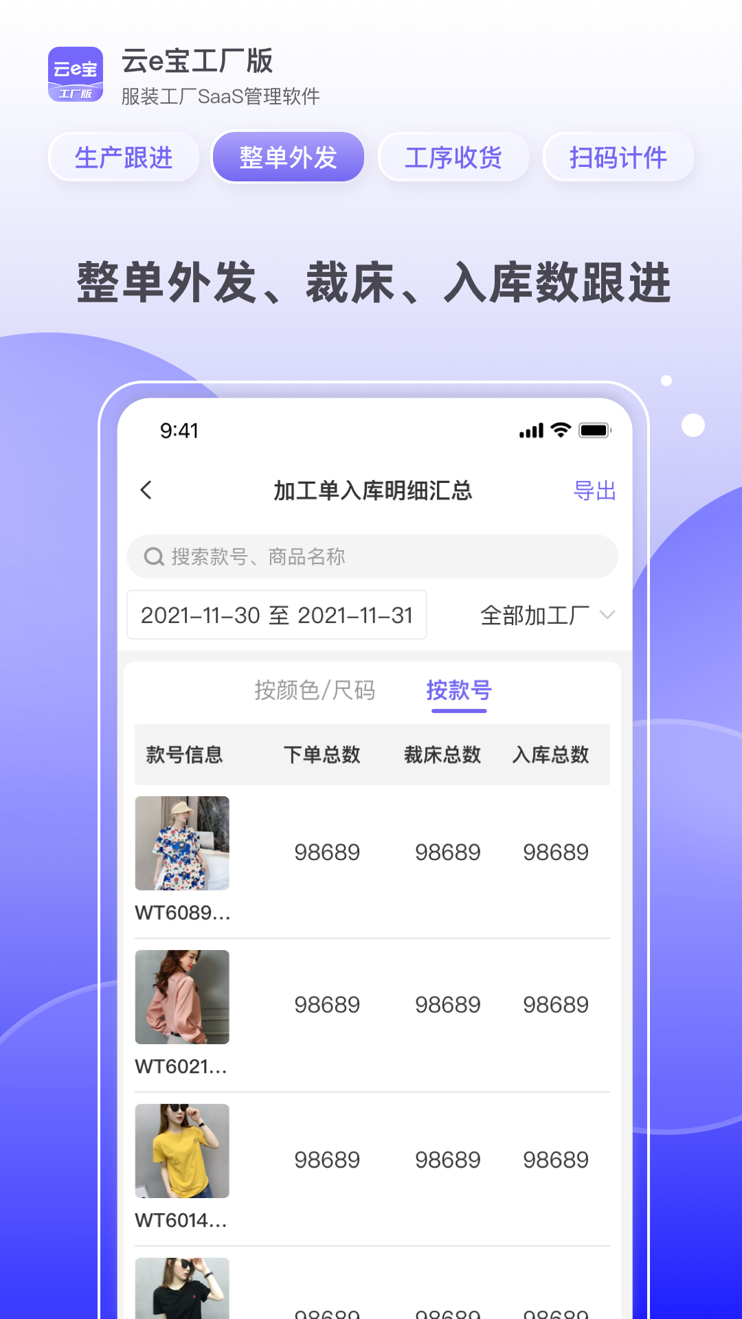 云e宝服装工厂进销存管理软
