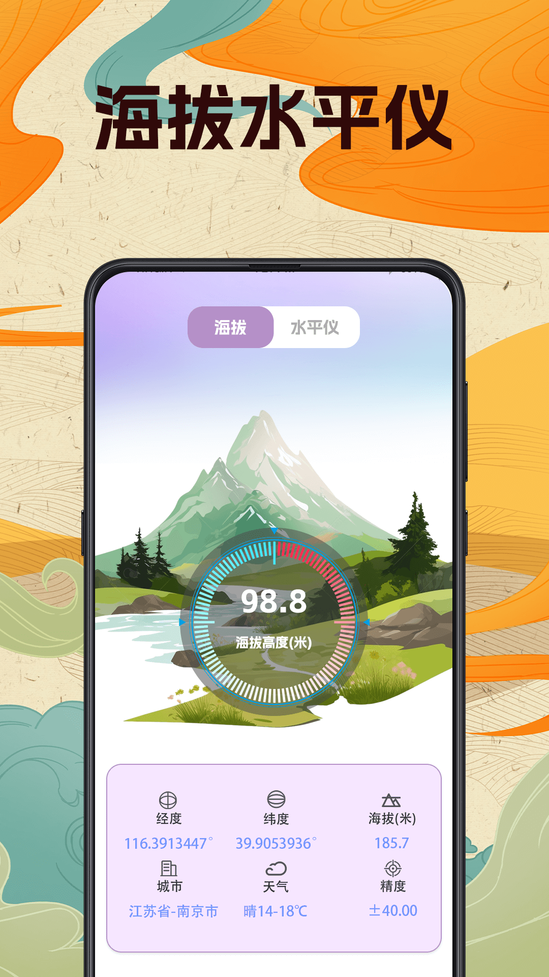 再就是【GPS海拔测量】功能啦。它可以通过GPS技术提供实时的海拔高度测量数据哦,这样您就能清楚地知道自己当前所在位置的高度啦。而且它还能保存历史海拔数据呢,您可以随时查看,这样就能追踪自己的行程以及高度的变化情况啦。