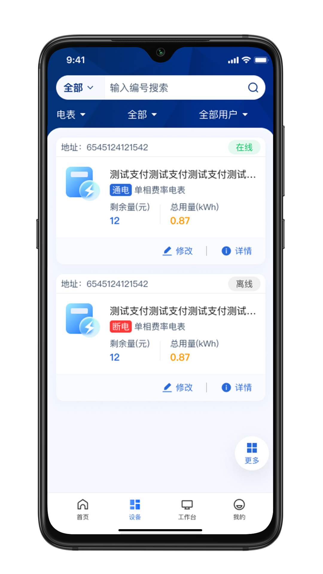叮叮能源主要用于对电表的管理充值缴费,管理员可以管理电表,管理用户,管理电价,电表充值,拉合闸,解绑等功能。用户可以查看管理员分配的电表,并对电表充值使用,查看电表使用情况