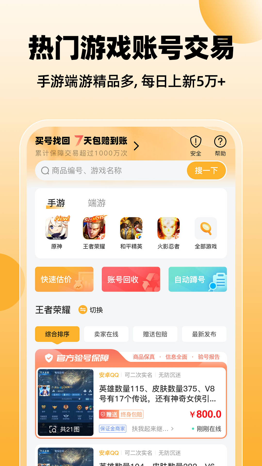 有上千万的游戏玩家正在戏仔平台售卖账号,这些账号涵盖了500多款精品游戏。每天新增的账号商品数量多达500000 +,供您挑选。有大量优质的游戏大神账号特惠出售,在首页还有热门游戏账号超值推荐。无论是手游还是端游,新游都有很多新人活动不容错过,平台的性价比算法让您能以划算的价格买到心仪的账号,轻松低价捡漏。
