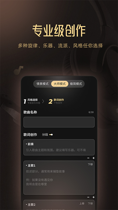 可以深度定制歌词结构,借助AI辅助创作出具有个性化的音乐杰作,以满足专业音乐人的创作需求。