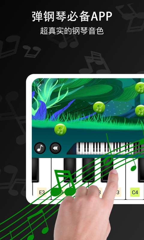 在钢琴游戏场景下,您既能轻松学钢琴,又能畅快地弹奏钢琴。