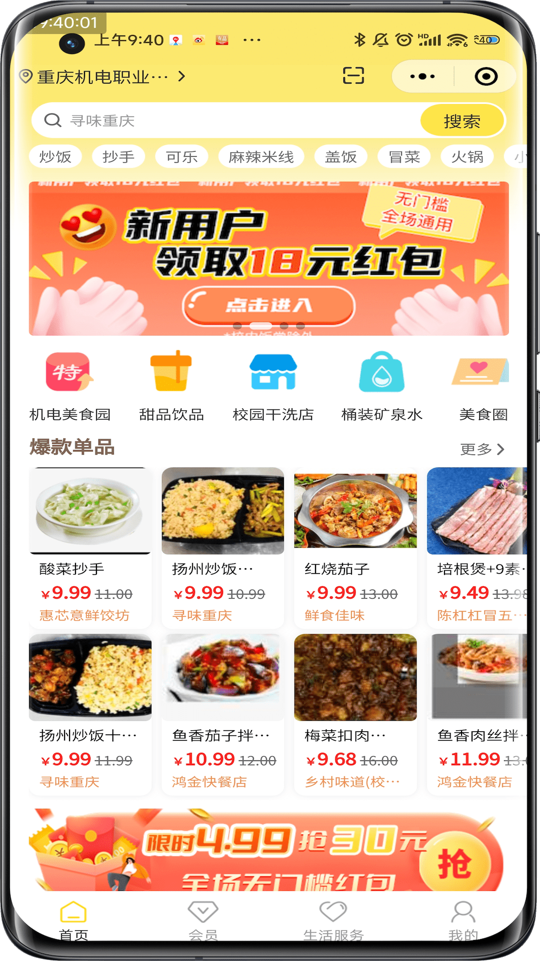 校园内的外卖点餐平台,线上线下都能用,超多优惠等你来!应用内包含丰富多彩的功能及优惠,为广大学子提供便利!