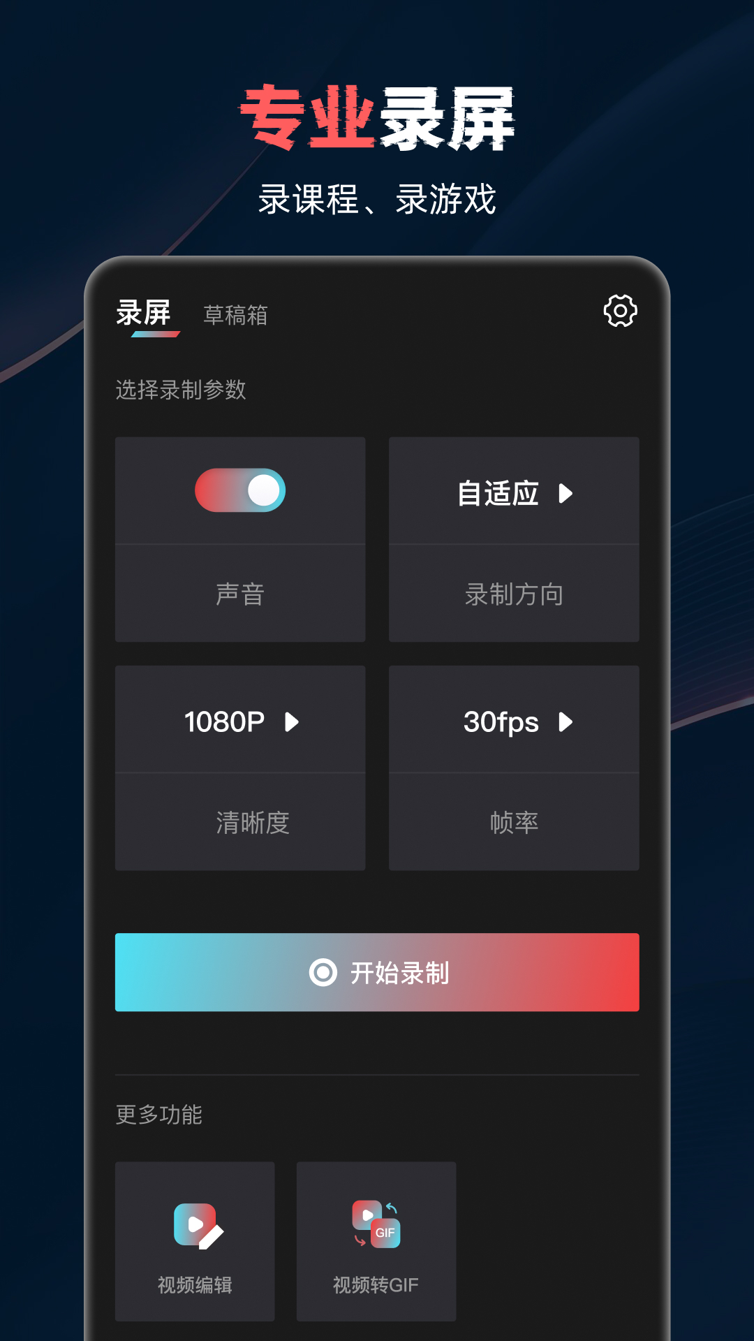 一键录屏:它支持高分辨率的录制,能够以手机原本的画质进行录制,同时还允许自定义参数设置,像1080P、高码率等都可自行设定;
