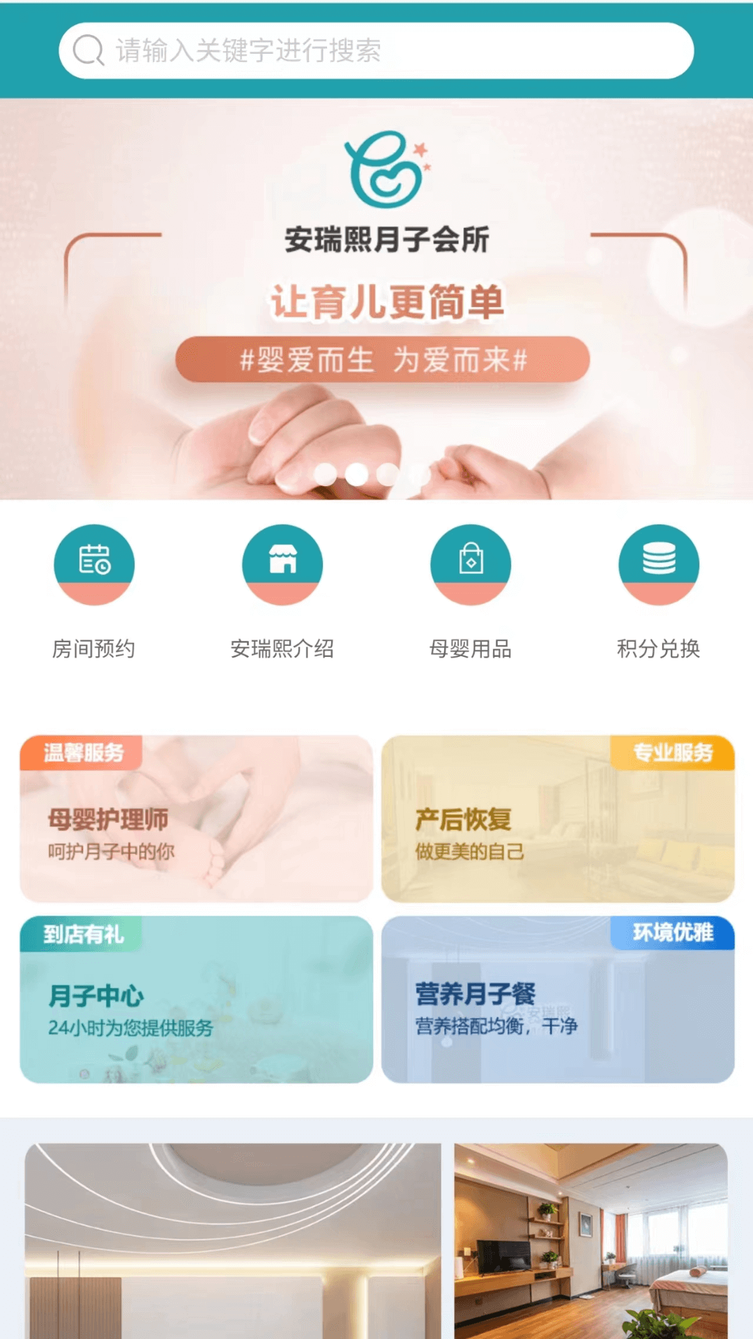 安瑞熙是一家专业的月子会所。它始终秉持“用心关爱,快乐分享”这一服务理念,凭借一流的专业医护团队,还有全方位、一站式的产品服务,为妈妈和宝宝提供产褥期的专业护理以及系统健康管理服务。在这里,妈妈们月子期间能够享受到科学的护理,让身体得到恢复、体形得以修复,心灵得到抚慰;宝宝们也能够获得精心细致的哺育和早教智力开发,从而助力家庭安心度过月子假期。
