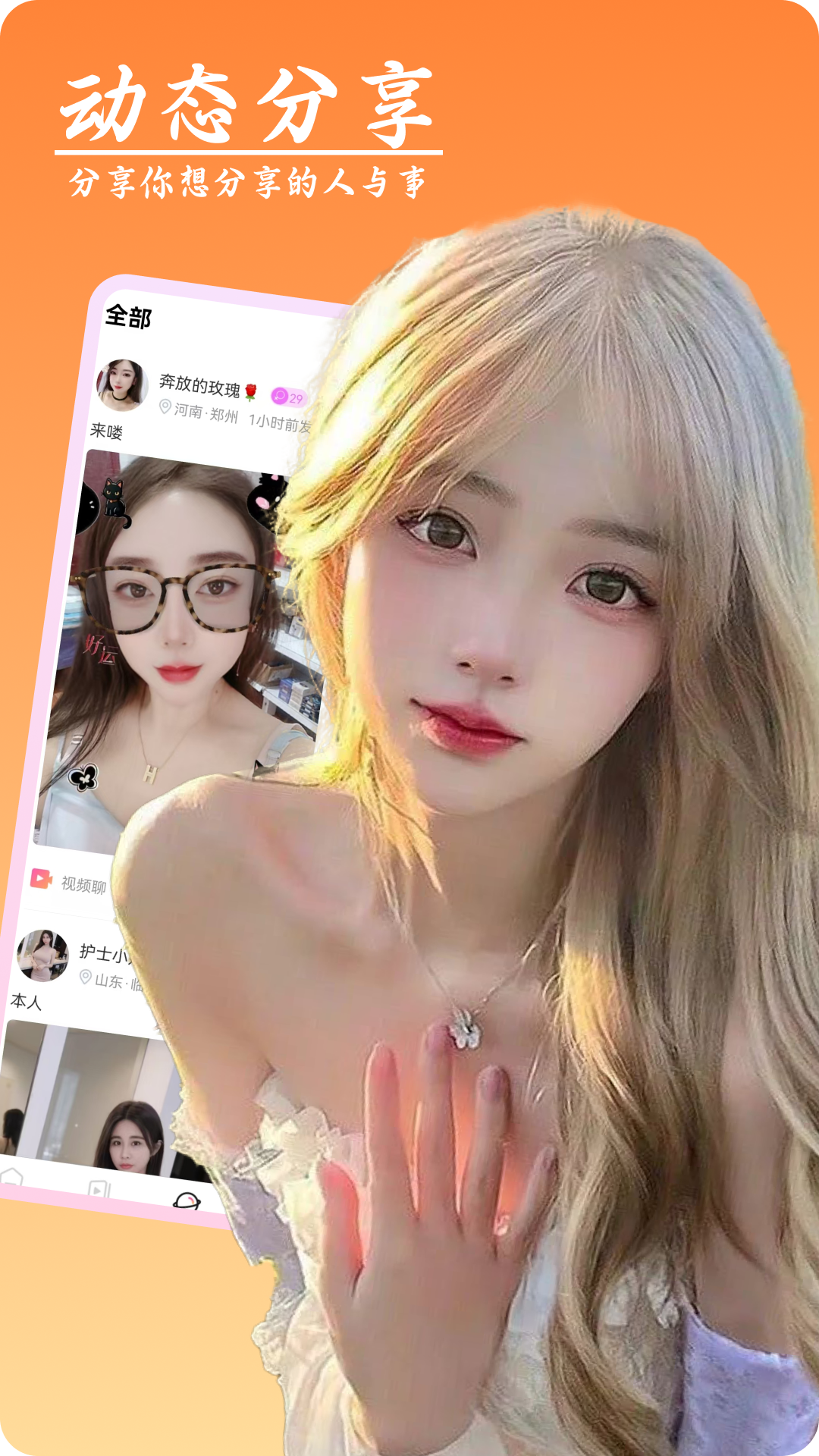 在这里,你可以扩展社交圈,寻找和结识新朋友,共同探讨感兴趣的话题。你可以 倾诉内心的想法和情感,表达自己的忧虑、困惑或喜悦。在这里你还可以随时分享生活点滴,表达真实的自我,展示兴趣爱好,找到心动的人。你可以去发现并结识周边地区的其他用户,拓展社交圈子进行实时沟通和交流。