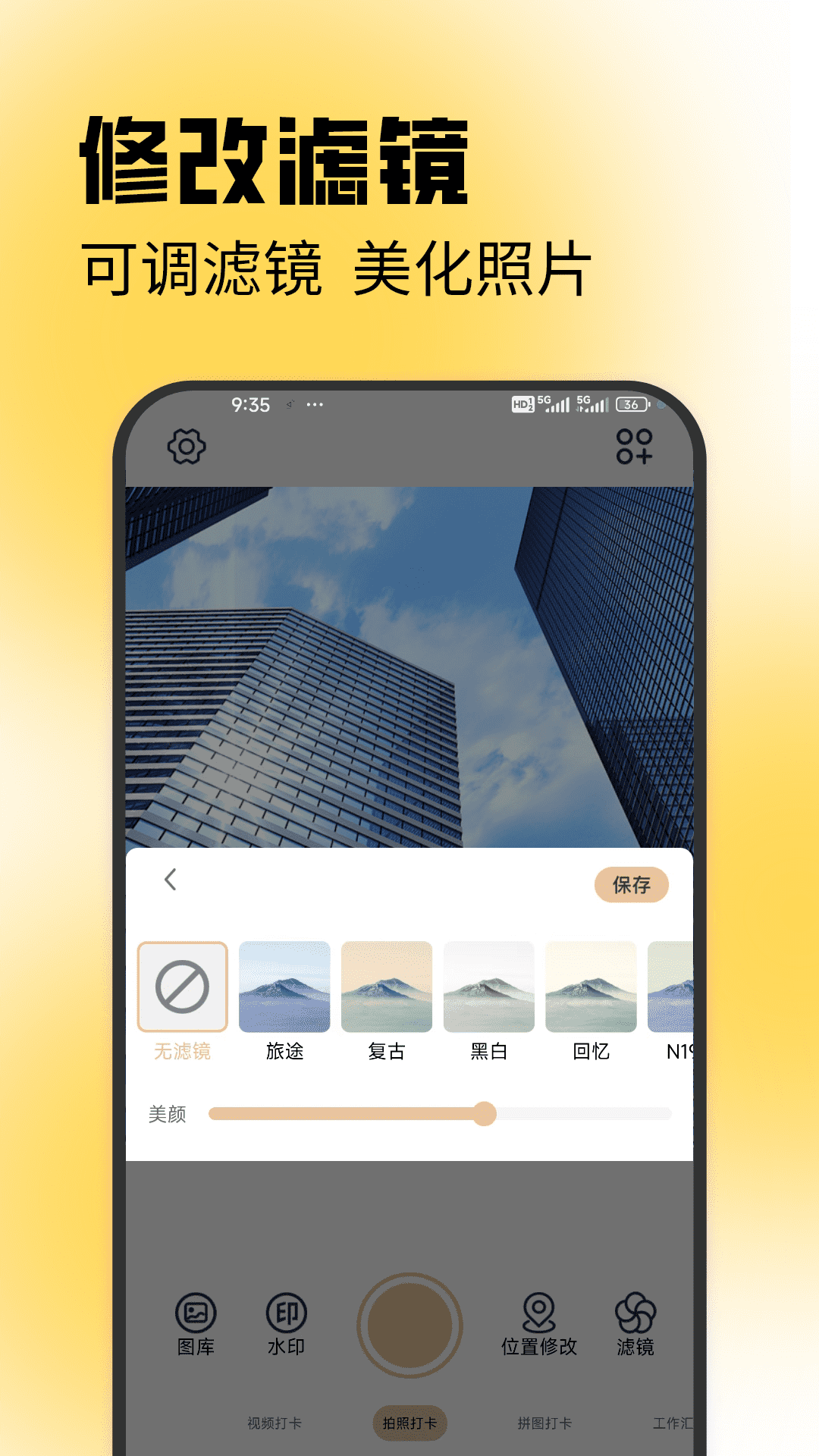 时间地点水印、天气水印、经纬水印、卡通水印、防疫水印、春节水印、打卡水印等多套模板,真实还原多种工作和生活场景,满足不同相机用户对水印样式的需求。