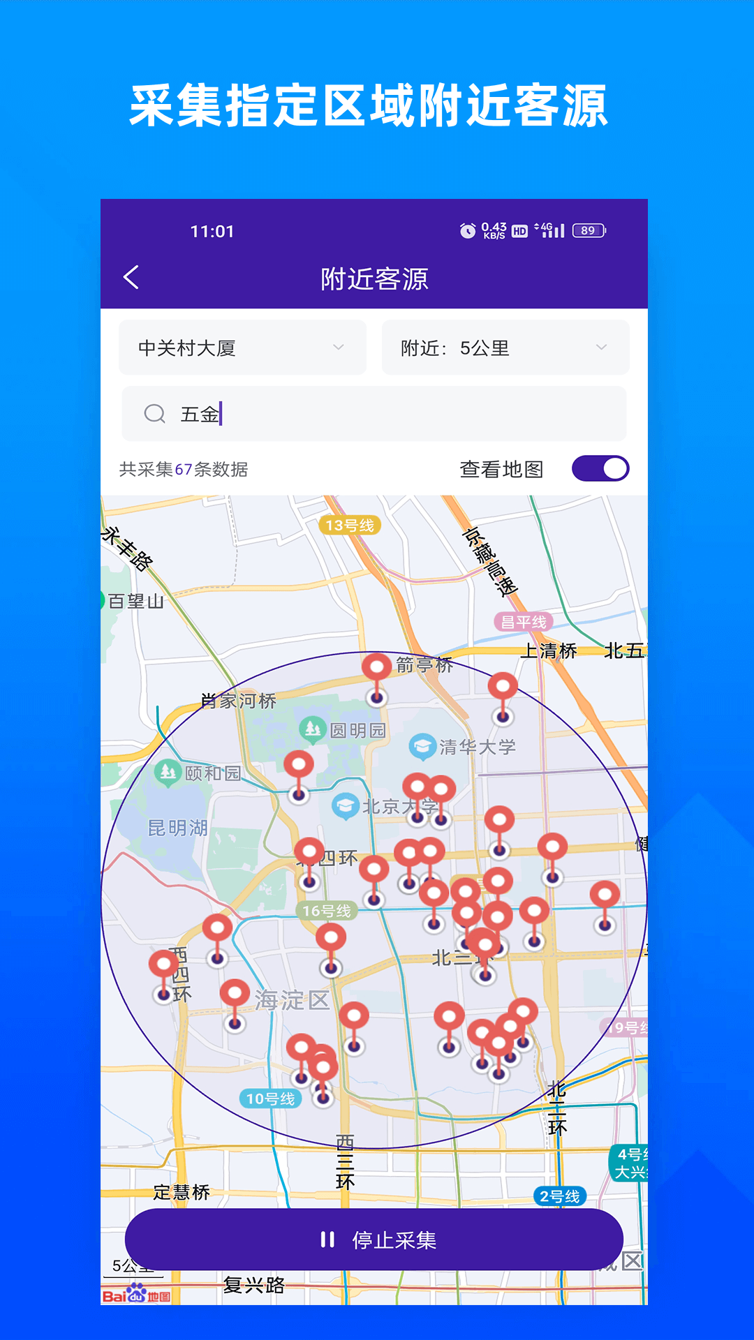 可以搜索指定区域附近的商家,方便进行区域化精准营销。