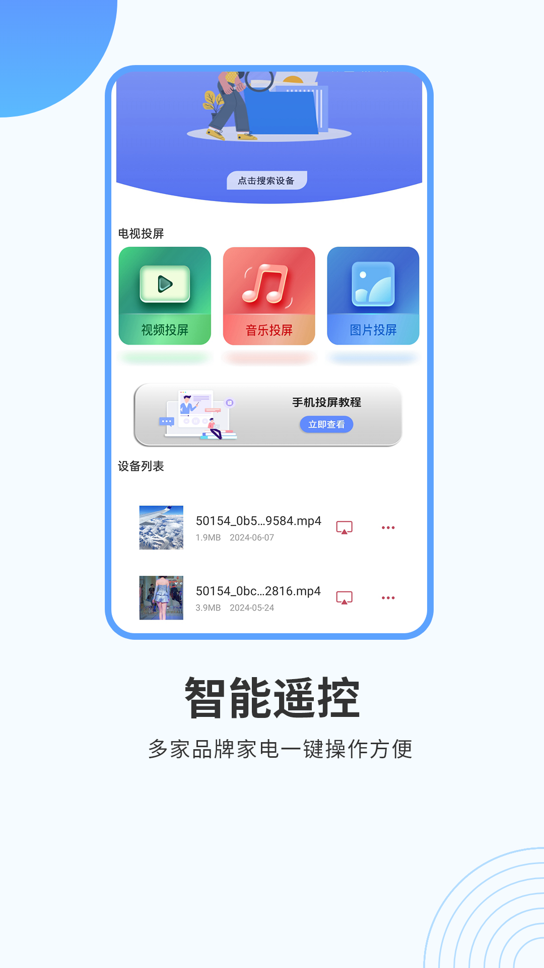 其二,具备投屏功能,本地的视频、照片、音乐均能一键投屏到电视上,让您尽情享受大屏带来的优质体验。