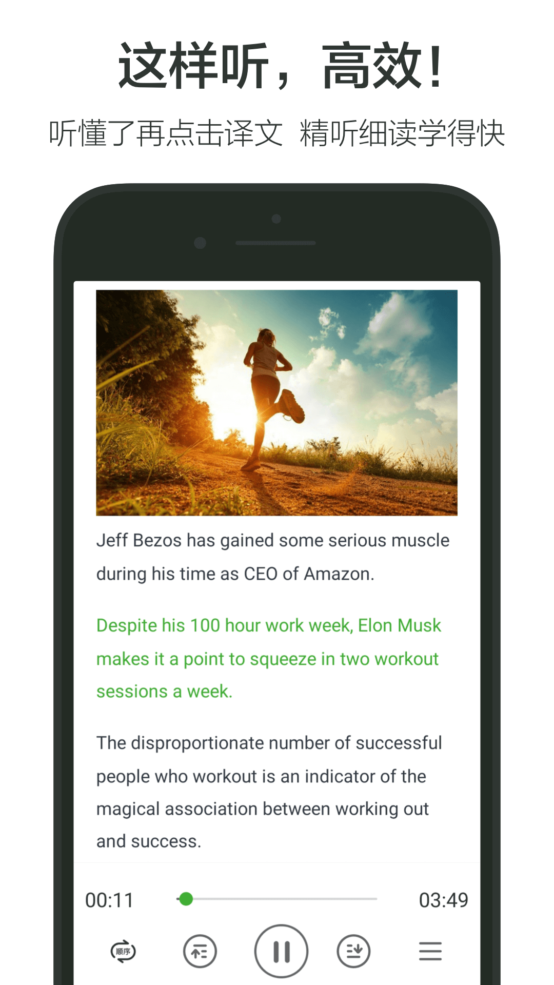 先将译文隐藏起来,等听懂之后再点击查看译文,这样的听力学习方式效率很高。