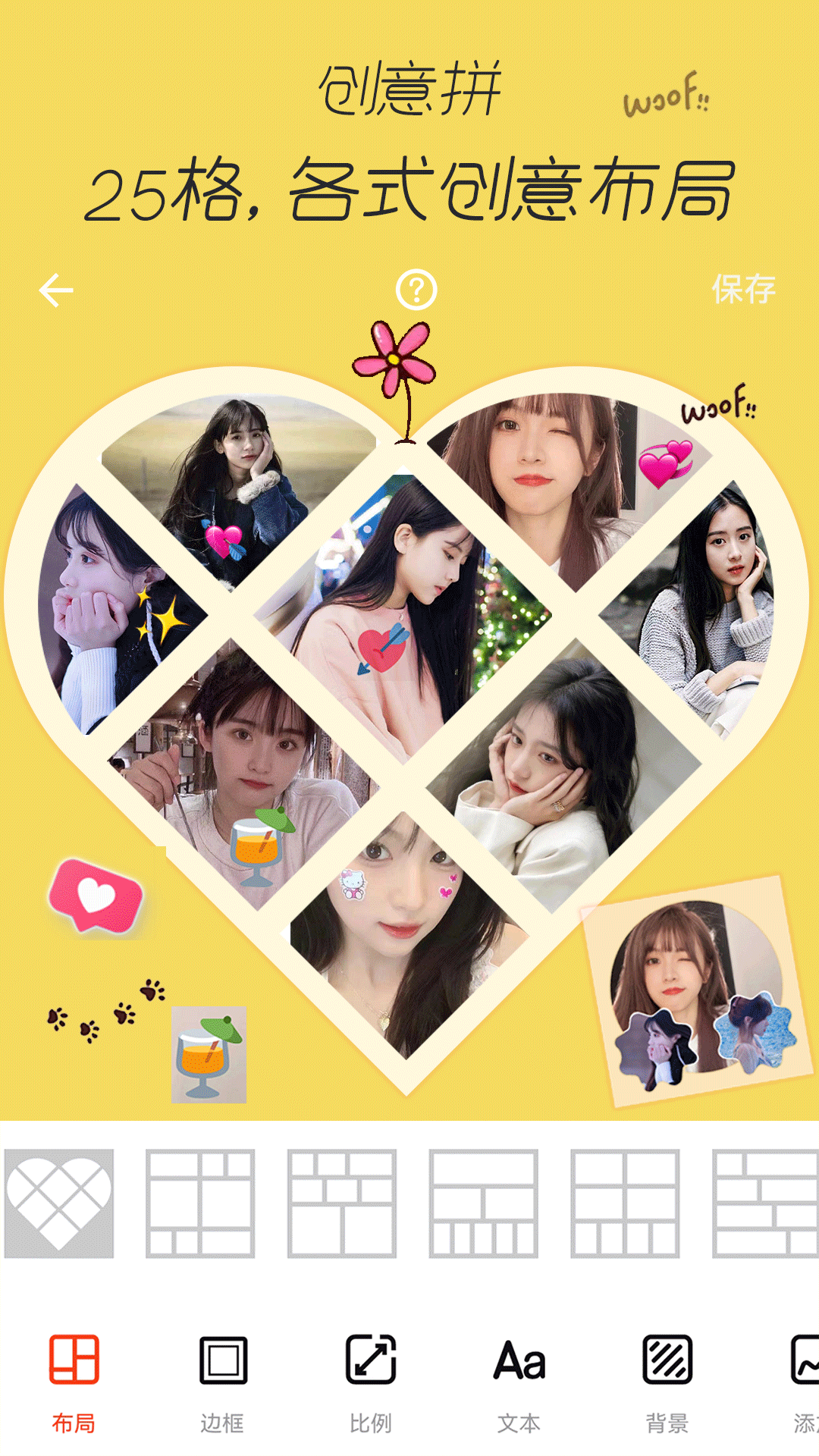 它能实现4K保存25张照片的拼图哦。软件内置商店中有海量精美素材,无论是贴纸、背景,还是字体、滤镜,一应俱全,让您天天都能轻松P图。