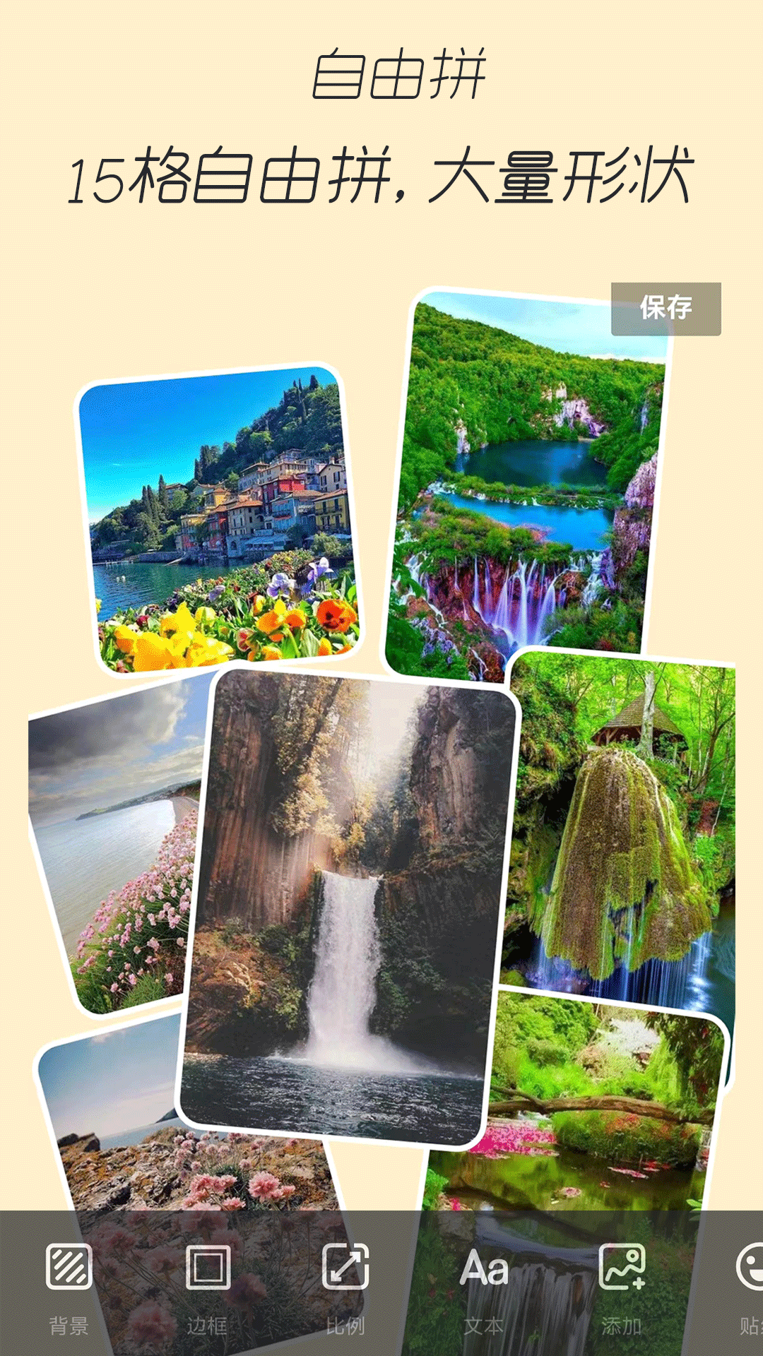 其次,还有多达15张照片的自由拼图功能,您可以随意改变拼图效果,并且每张图片都支持裁剪、抠图、滤镜、翻转等操作。