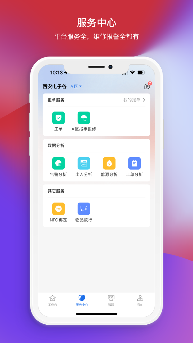 智慧办公:提供报事报修、巡更巡检以及待办审批等功能,让使用者尽享便捷体验。