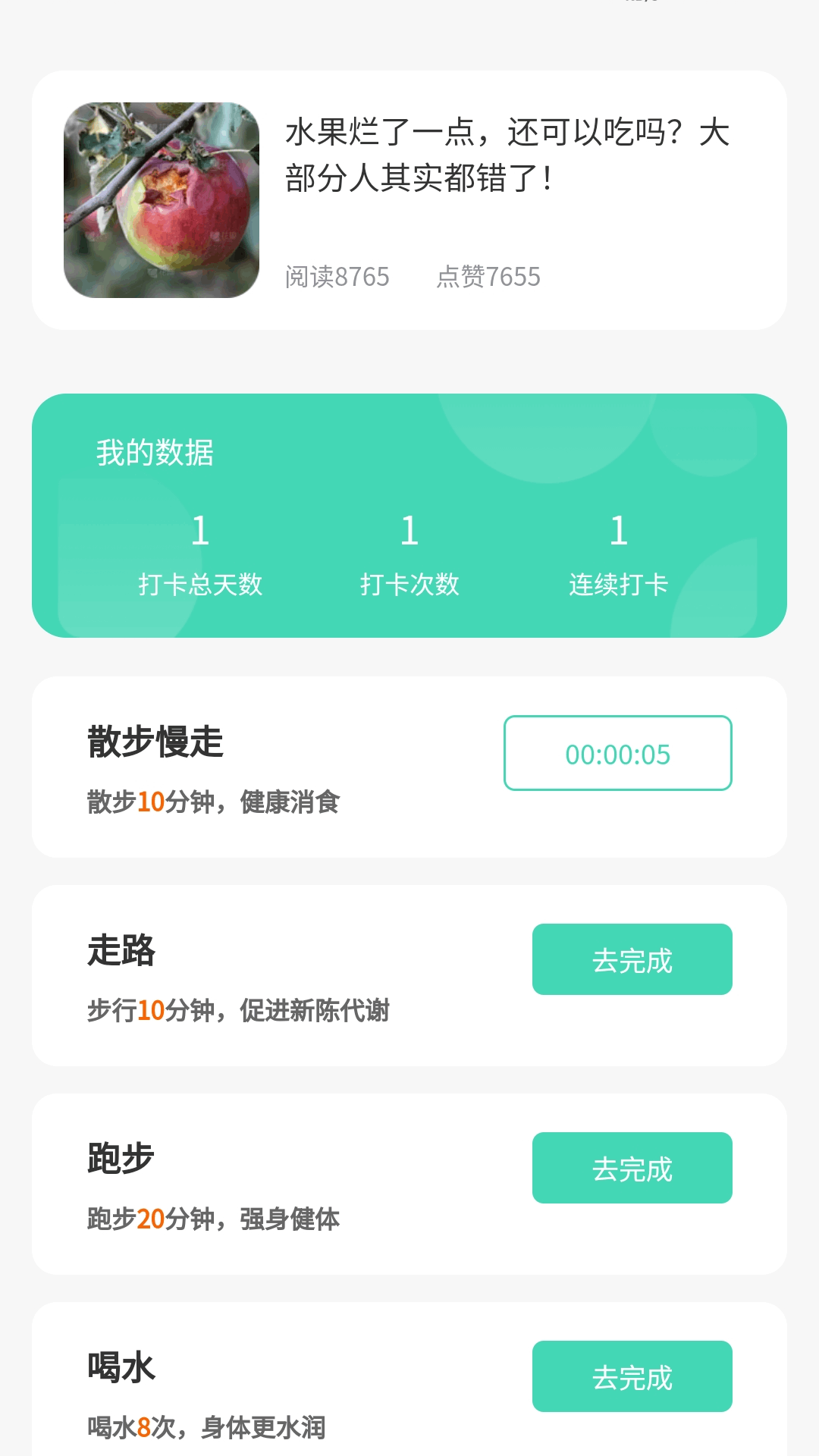 步步福顺是一款为你的健康护航的运动软件。它能让你轻松掌握自己的运动数据,内含签到和打卡,更有贴心果蔬知识,赶紧下载,踏上全新的健康生活之旅吧!