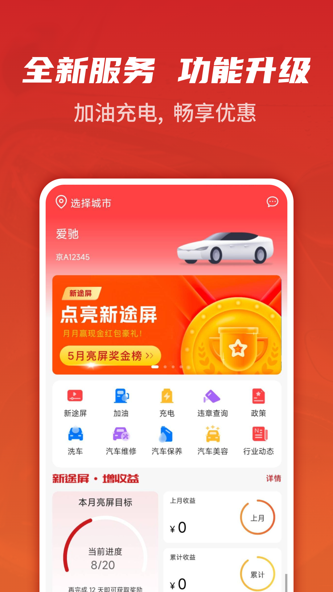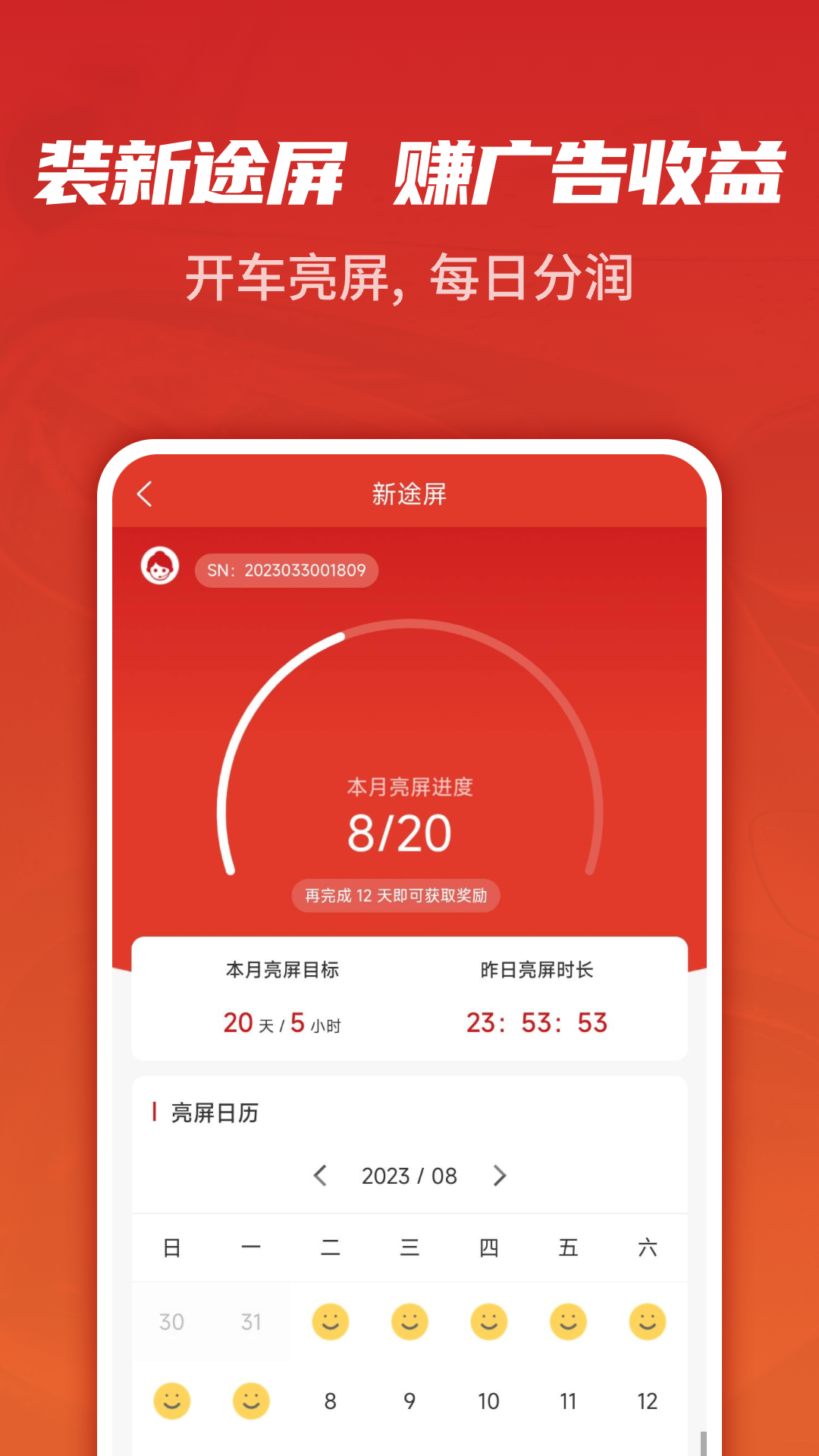 【新途屏业务 震撼来袭】为广大网约车司机朋友出车时增加一项收益,在app内可进行新途屏收益查看及提现。
