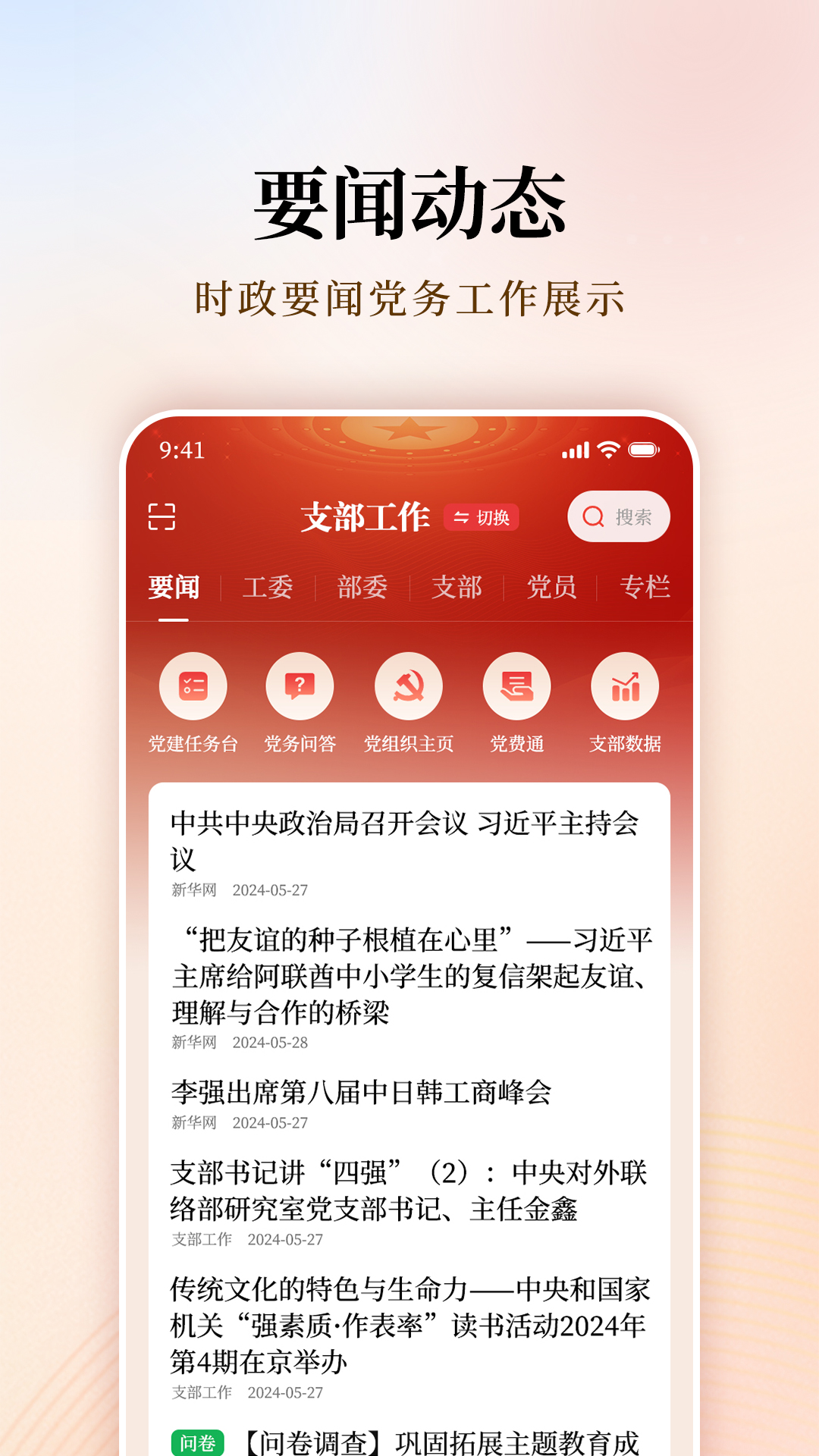 支部工作APP由中央和国家机关工委开发建设,是中央和国家机关统一的党建工作云平台。它构建起部门机关党委到基层党组织再到党员的党建工作网络,为中央和国家机关各级党组织,尤其是党支部抓好基层党建工作、做好党员教育管理提供了信息化的实用工具;同时,也为广大党员干部加强理论武装以及交流互动构建了线上开放平台,致力于推动中央和国家机关党建工作朝着高质量方向发展。
