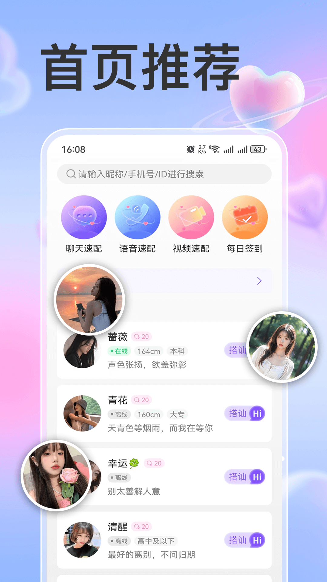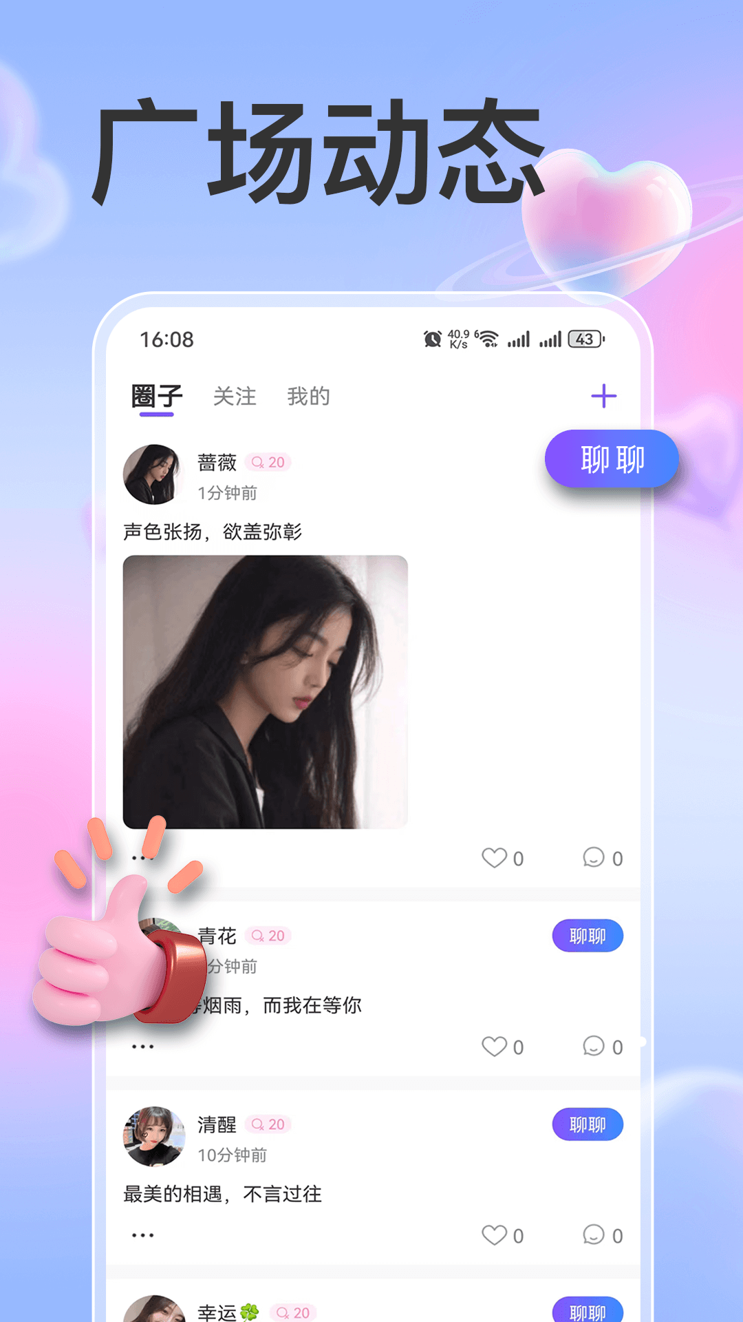 慕颜是一个全新的交友聊天平台,它简单易懂。这个平台覆盖了全国各地的单身女性以及成熟女性,是成熟男性的聊天交友好去处。在这里,你可以发现身边陌生的单身异性。从语音聊天起步,进而发展到视频面对面互动,如此轻松地就能邂逅近在咫尺属于自己的缘分。不管你身处世界的哪个角落,都能够借助这个平台迅速与同城附近的异性牵手。