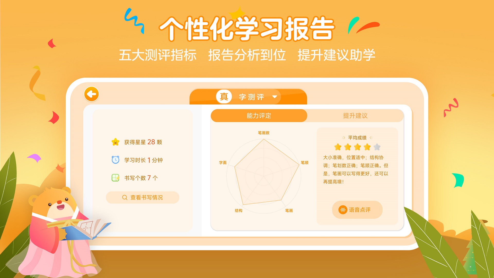 【个性化学习报告】基于五大测评指标生成报告,分析全面到位,还能提供个性化的学习建议,有助于孩子更好地提升书写能力。
