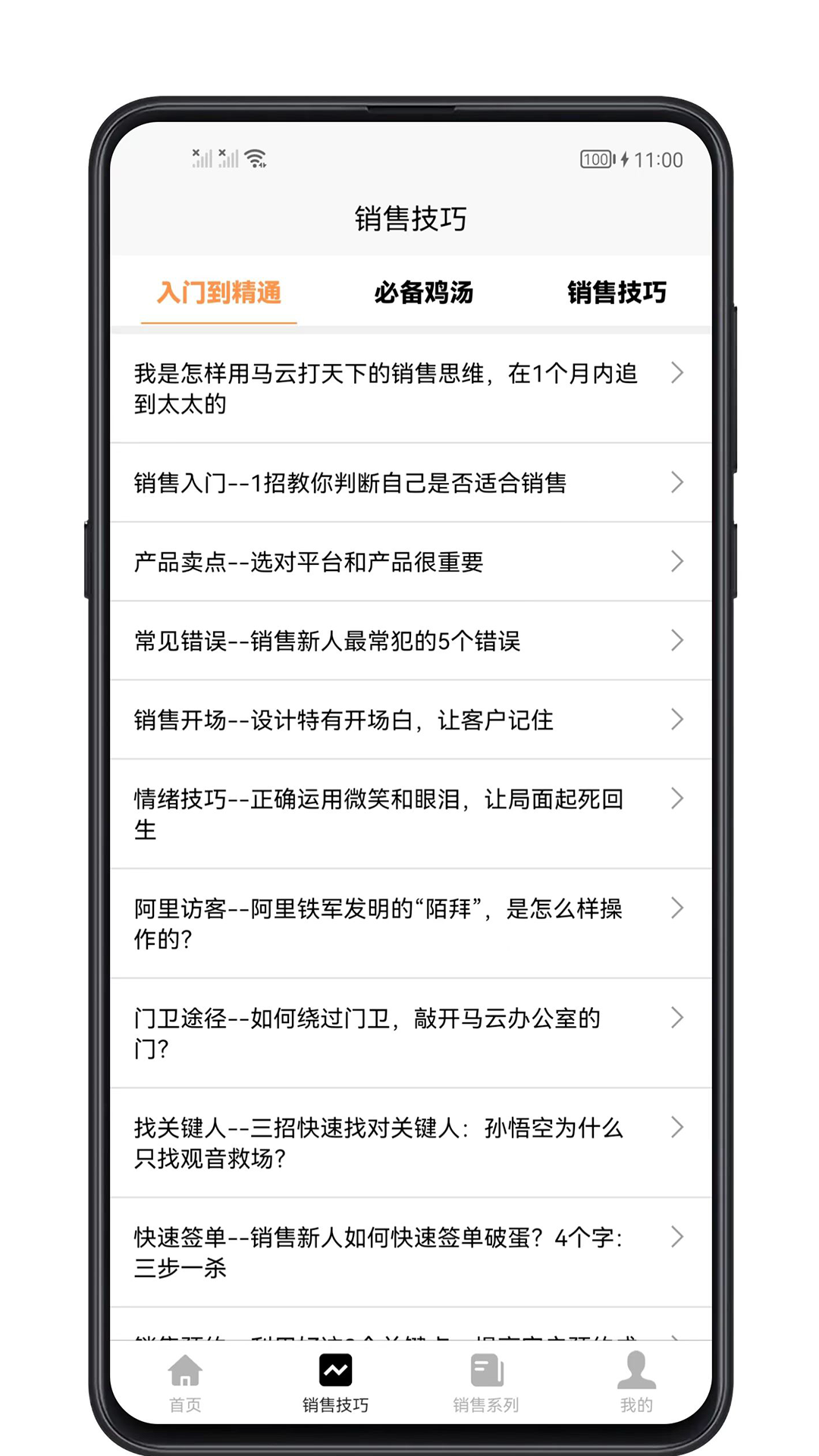《销售技巧》app介绍了销售高手们所总结的销售技巧,可供大家参考!如果想要了解更多详细内容,尤其是销售成交技巧,请下载《销售技巧》app!
