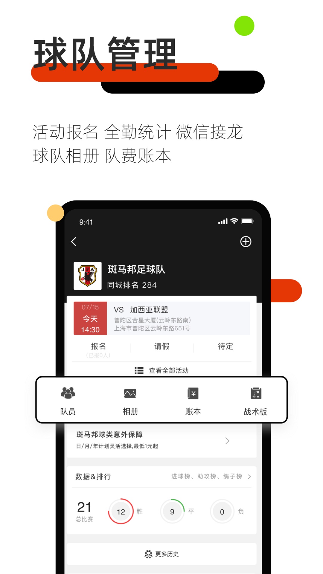 3. 能够招募球队,支持在线报名参与。