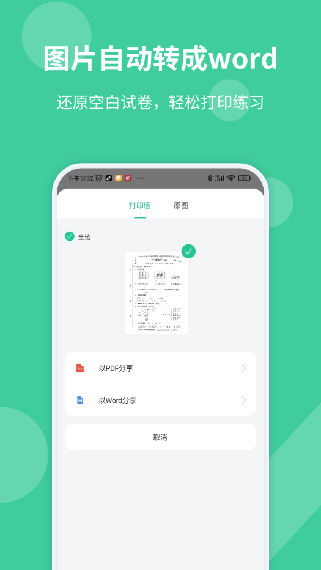 移动存储功能:可将所有试卷的电子版存储在手机当中,从此不必担忧试卷丢失的问题。
