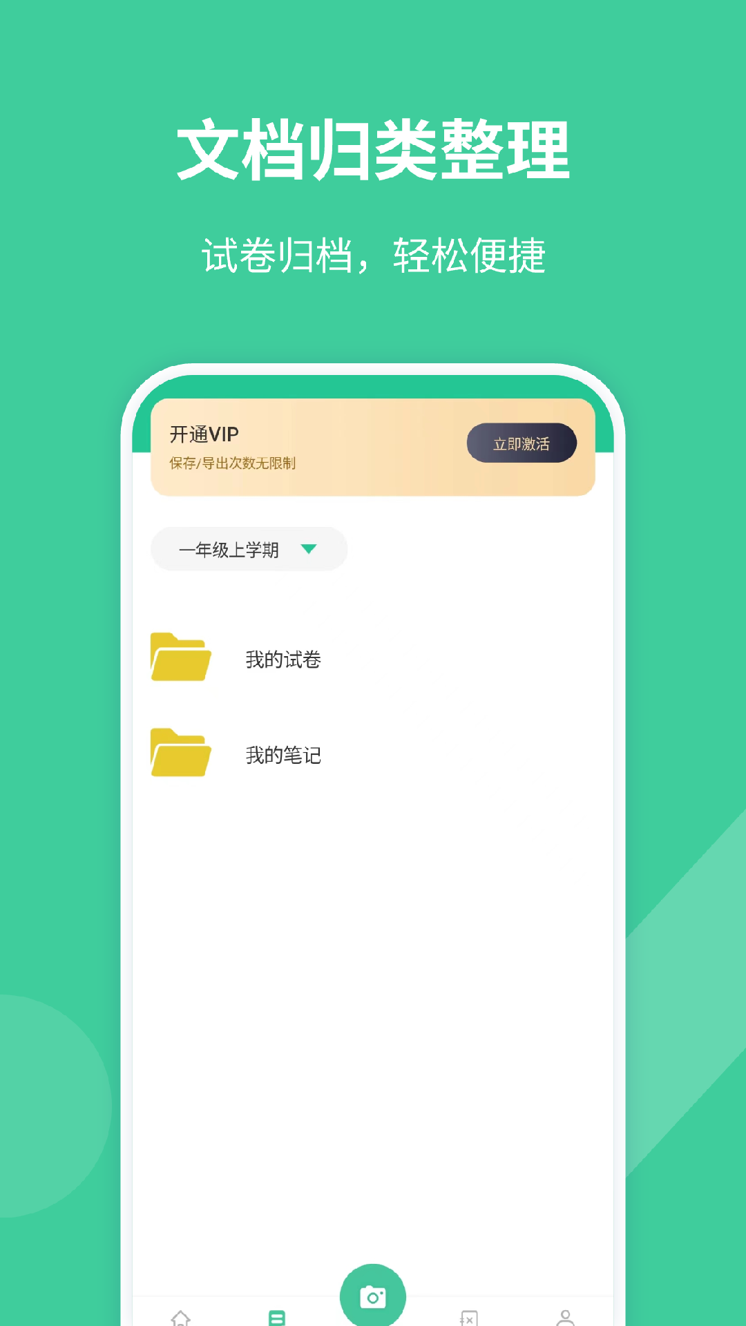 拍试卷功能:它能够自动清除试卷上的手写笔迹,将试卷完美还原成空白状态,为重新做错题提供极大的便利。