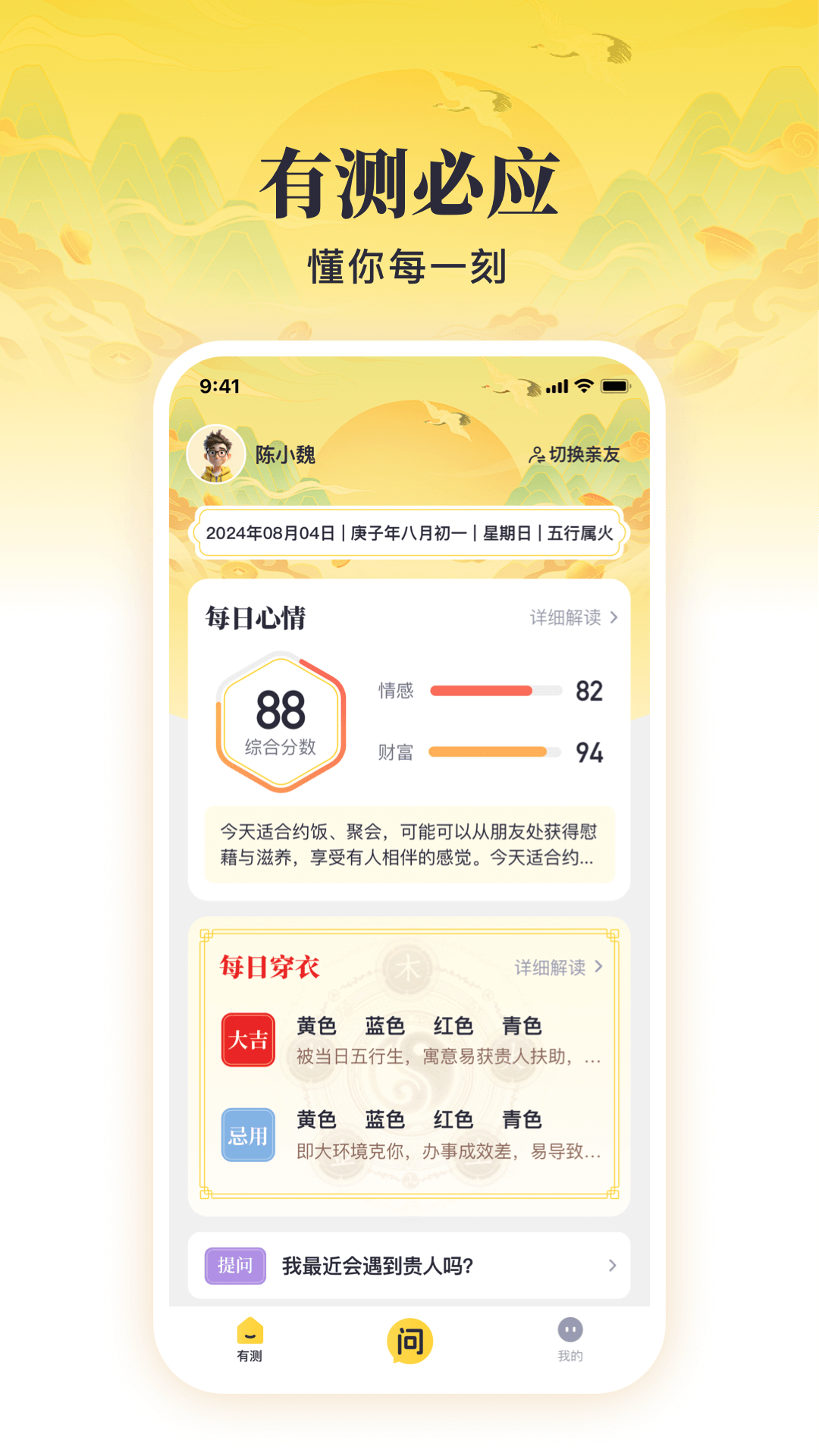 有测必应APP是一款致力于弘扬和传播中国传统文化的创新型数字平台。我们专注于将古老智慧与现代科技相结合,为用户提供全面、专业的传统文化相关内容和咨询服务。无论您是希望通过五行穿衣提升生活品质,亦或是寻求紫薇解读的指引,有测必应APP都能为您提供服务。