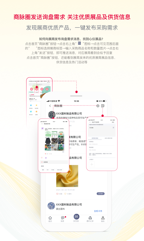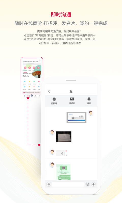 强大的标签检索功能,搜索感兴趣的展商、展品,提高观展效率;便捷灵活的邀约日程管理和即时提醒,快速发布需求信息、对感兴趣的展商和产品互动,线上邀约,线下见面。