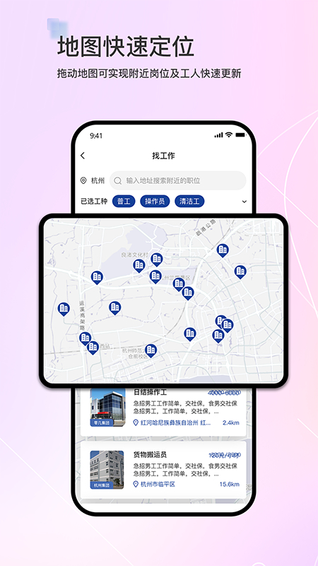 【定位求职】 依据自身所在的地理位置,为求职者提供周边的岗位信息,让找工作就在身边变为现实!