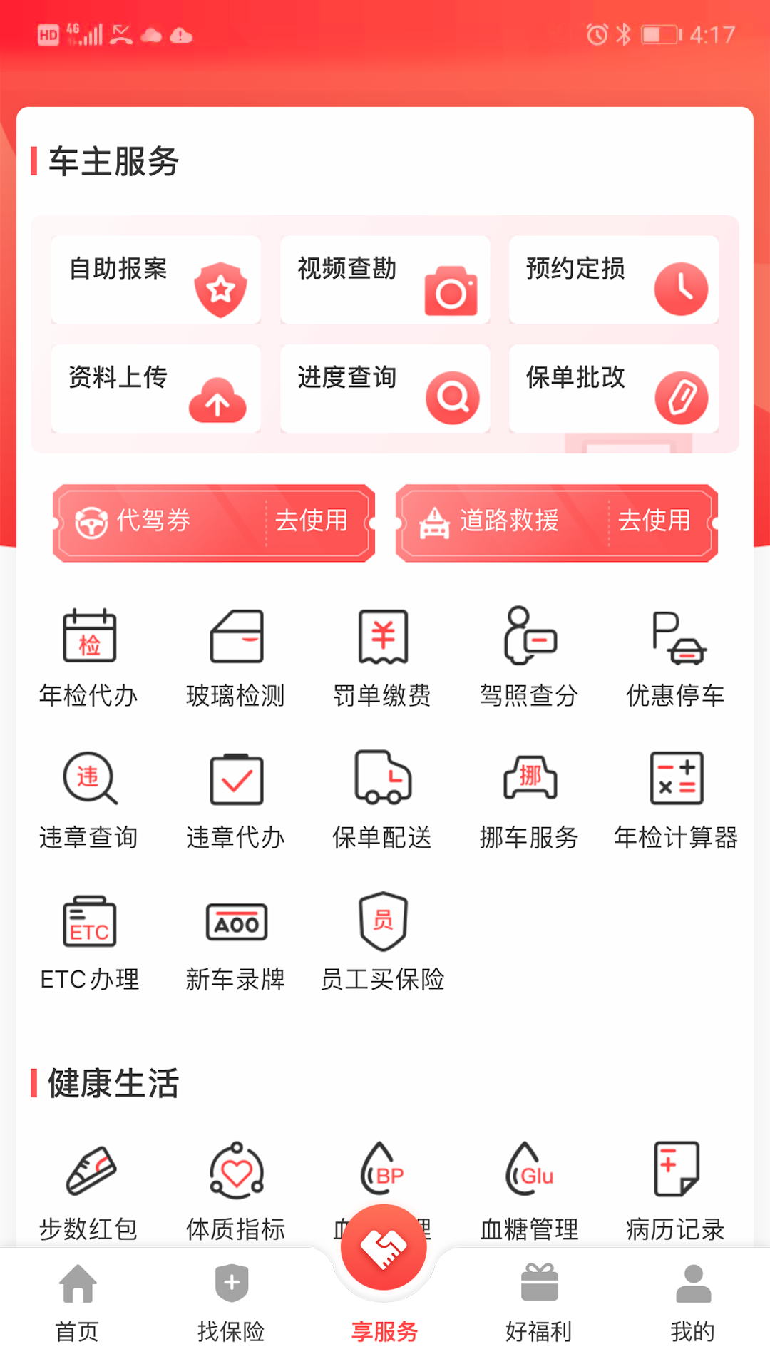 【车生活】代驾、道路救援、年检代办、玻璃检测、罚单缴费、驾照查分、优惠停车、违章查询等十多项车主服务