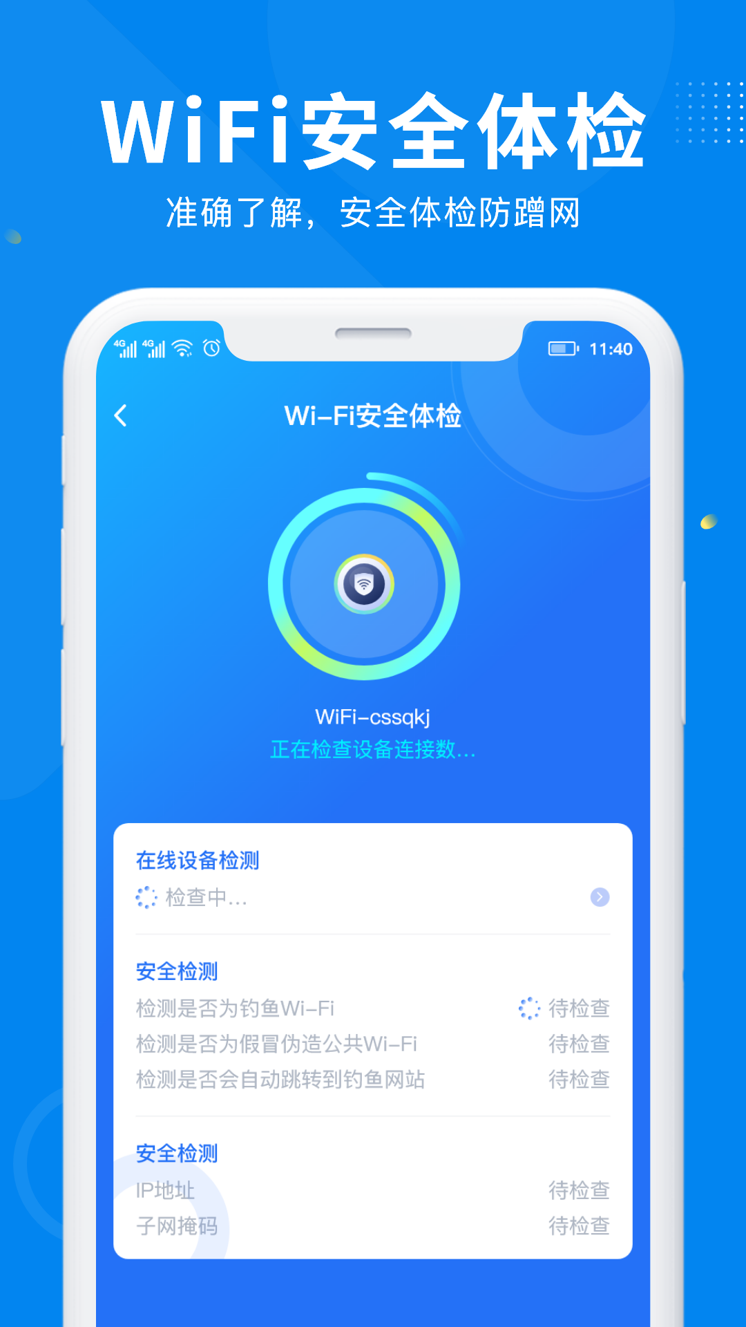 1、一键测速:查看手机网速,2G、3G、4G、5G、Wifi都可使用;