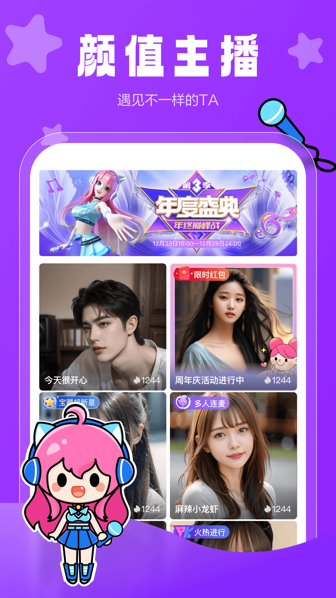 啵播Live,这是一个汇聚众多颜值主播的直播平台哦。在啵播Live里,你能够轻松地与主播在直播间畅快聊天、积极互动,一同分享无尽的快乐呢。而且,直播间还有超热辣的PK环节,精彩刺激。此外,平台还会不定期举办盛大的盛典活动,啵播Live期待着与你相逢。