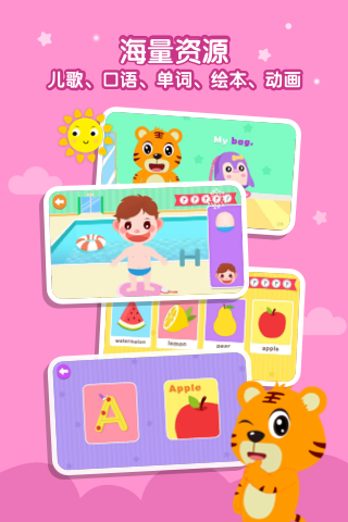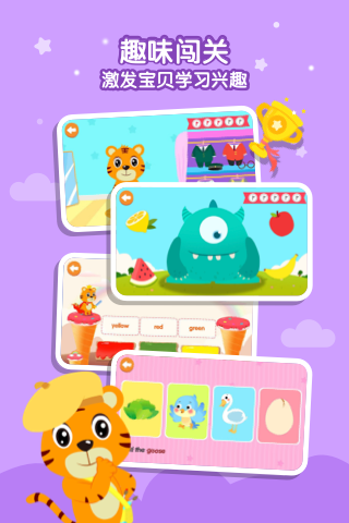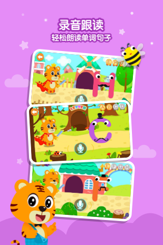 以动画与互动为载体,按照儿童认知发展规律,由字母逐渐向单词过渡铺垫,让孩子在玩乐时积累对字母和单词的认识。