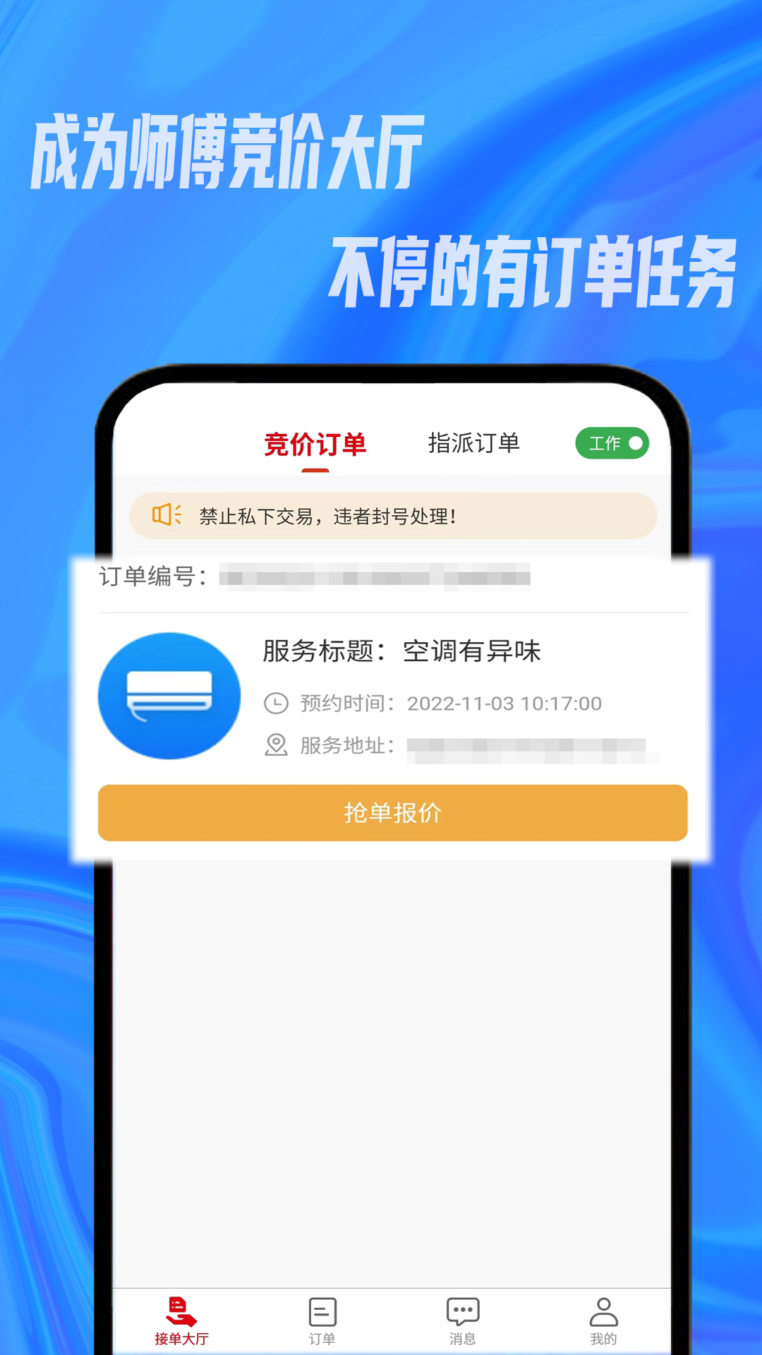 本公司推出一款家政服务,可满足用户在线发布下单(日常保洁、大扫除、开荒保洁、家电清洗、管道疏通、家电,家具安装、维修、保养等)寻找师傅上门服务,帮帮到家是一款方便快捷的软件。