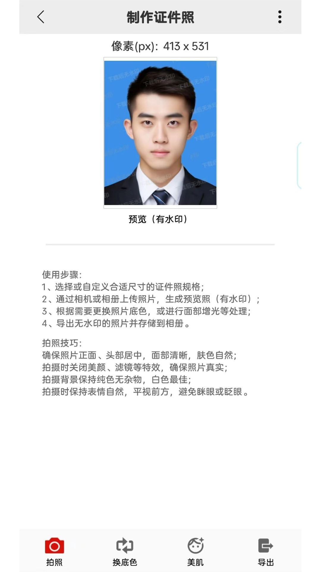 其二,可自动生成证件照。用户只需按照APP的操作提示,就能轻松得到符合要求的证件照,无需复杂的拍摄和后期处理流程。