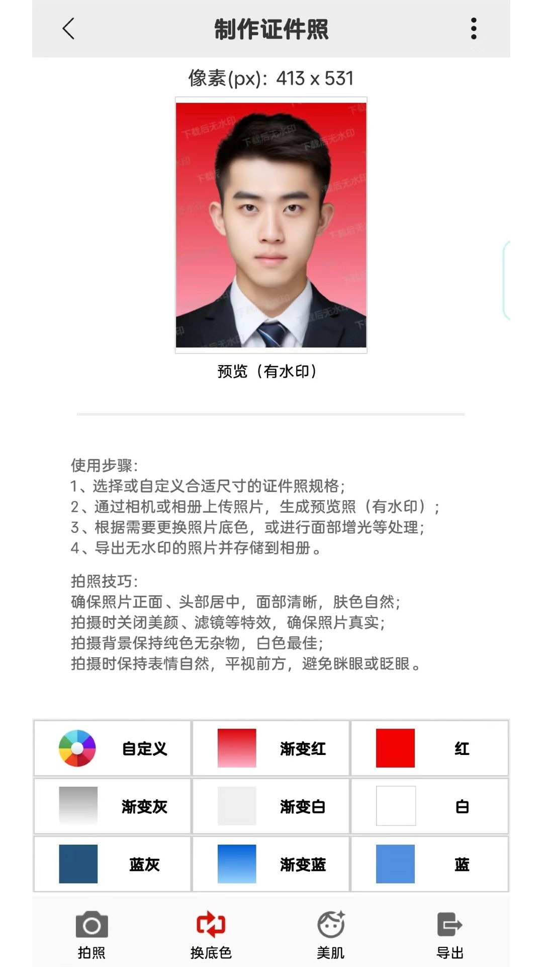 其五,还提供导出电子照的功能。生成或编辑好证件照后,用户可以方便地将电子照导出,以便用于各种需要提交电子证件照的场景,如网上报名、电子文档提交等。
