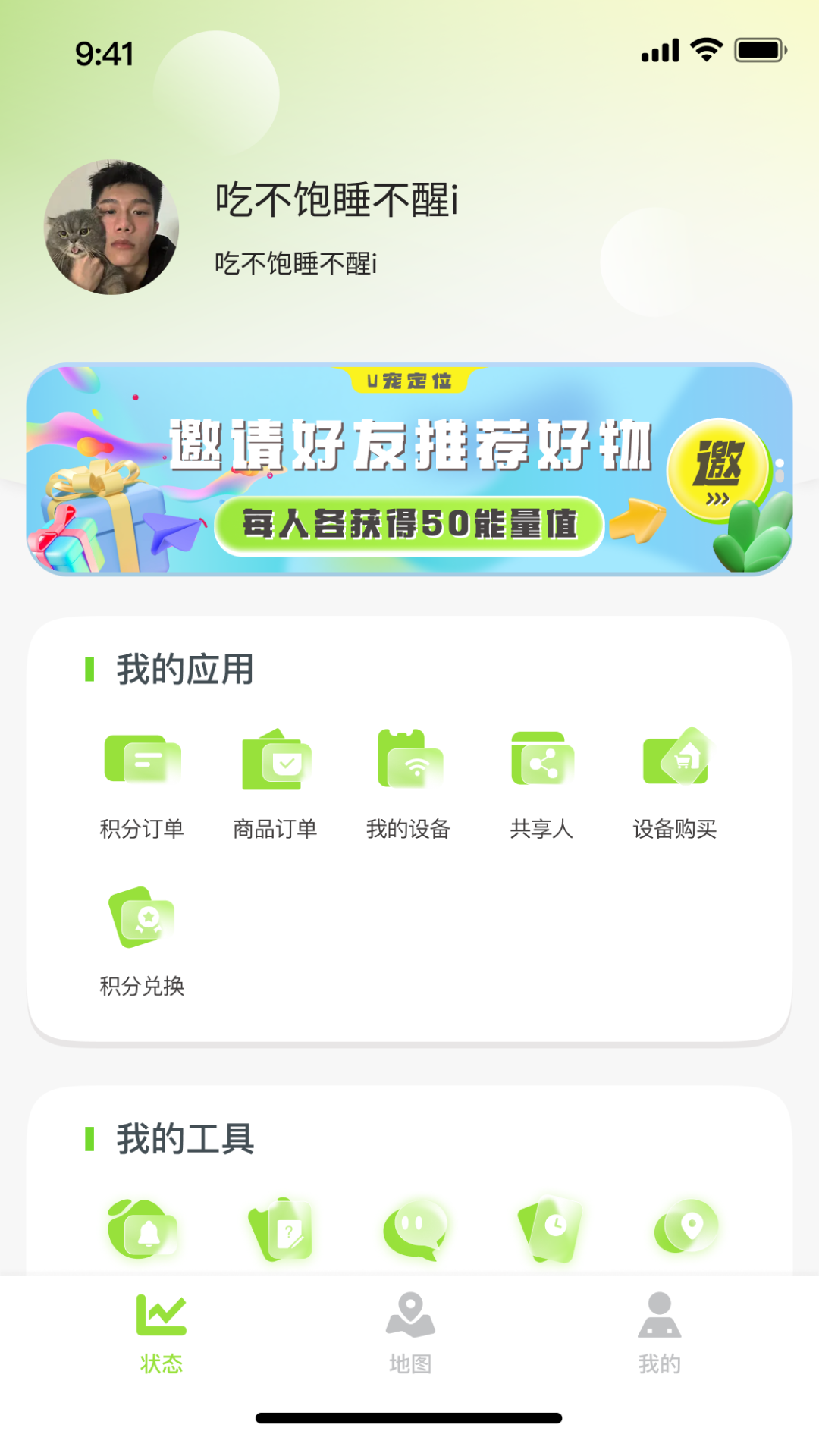 【积分兑换】:加入我们的平台之后,您不但能够守护家人和宠物,通过分享还能够赚取积分用来兑换好东西哦。要是您邀请朋友加入U宠定位,还会得到非常丰厚的积分奖励呢。