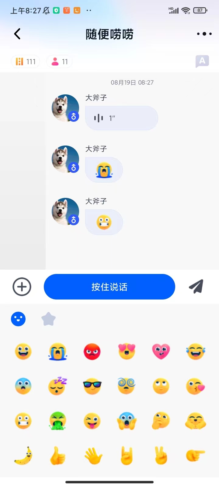 - 房间聊天:用户可以创建各种不同主题的房间,然后在房间里借助语音、表情、图片等多种形式进行交流互动。