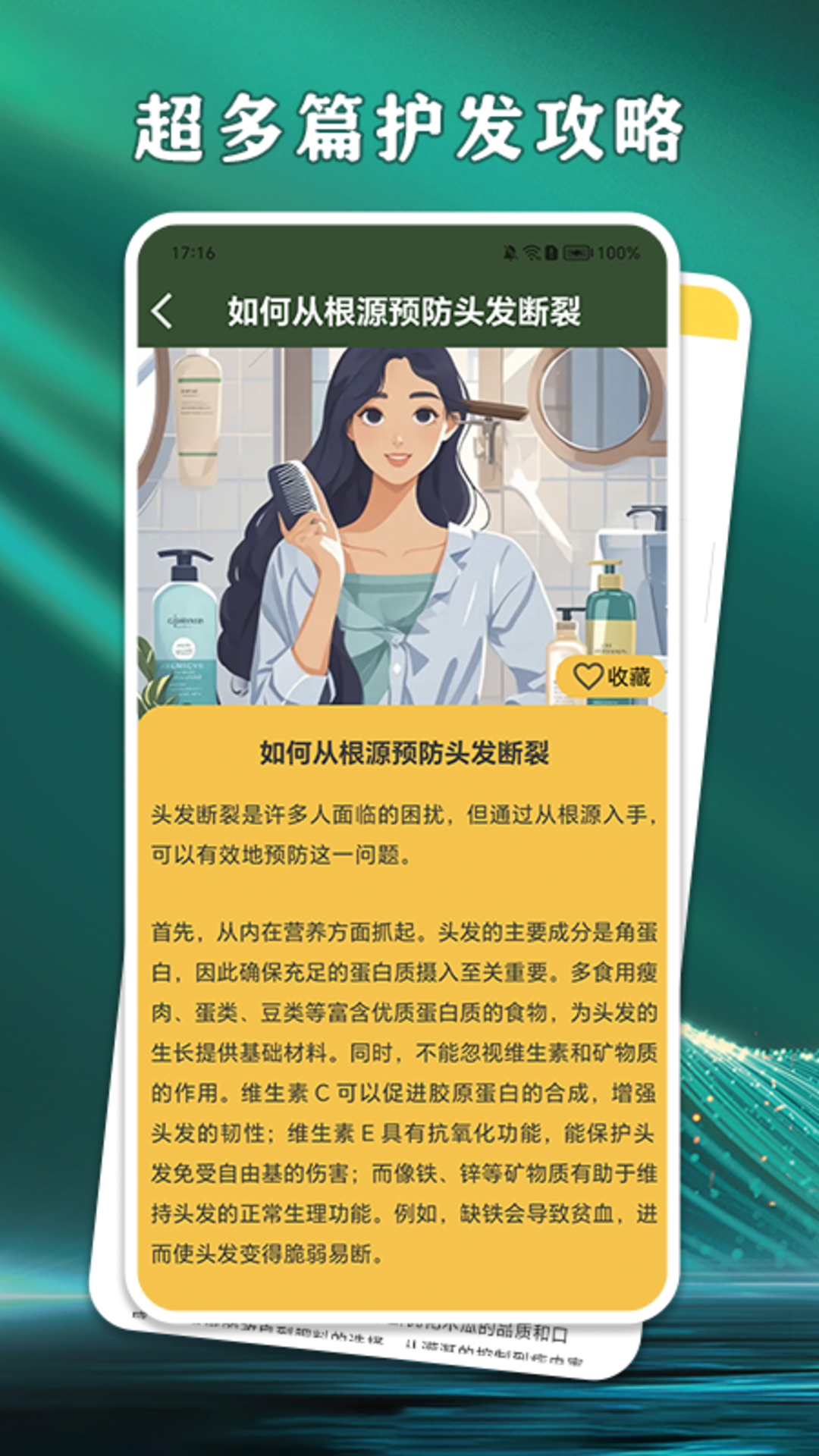 这里汇聚了丰富的养发护发知识。从日常饮食对头发健康的影响,如富含蛋白质、维生素和矿物质的食物如何促进头发生长;到正确的洗发、护发步骤,像水温的选择、涂抹护发素的正确位置等。还有针对不同季节头发护理的要点,帮助用户全面了解头发护理的科学知识。