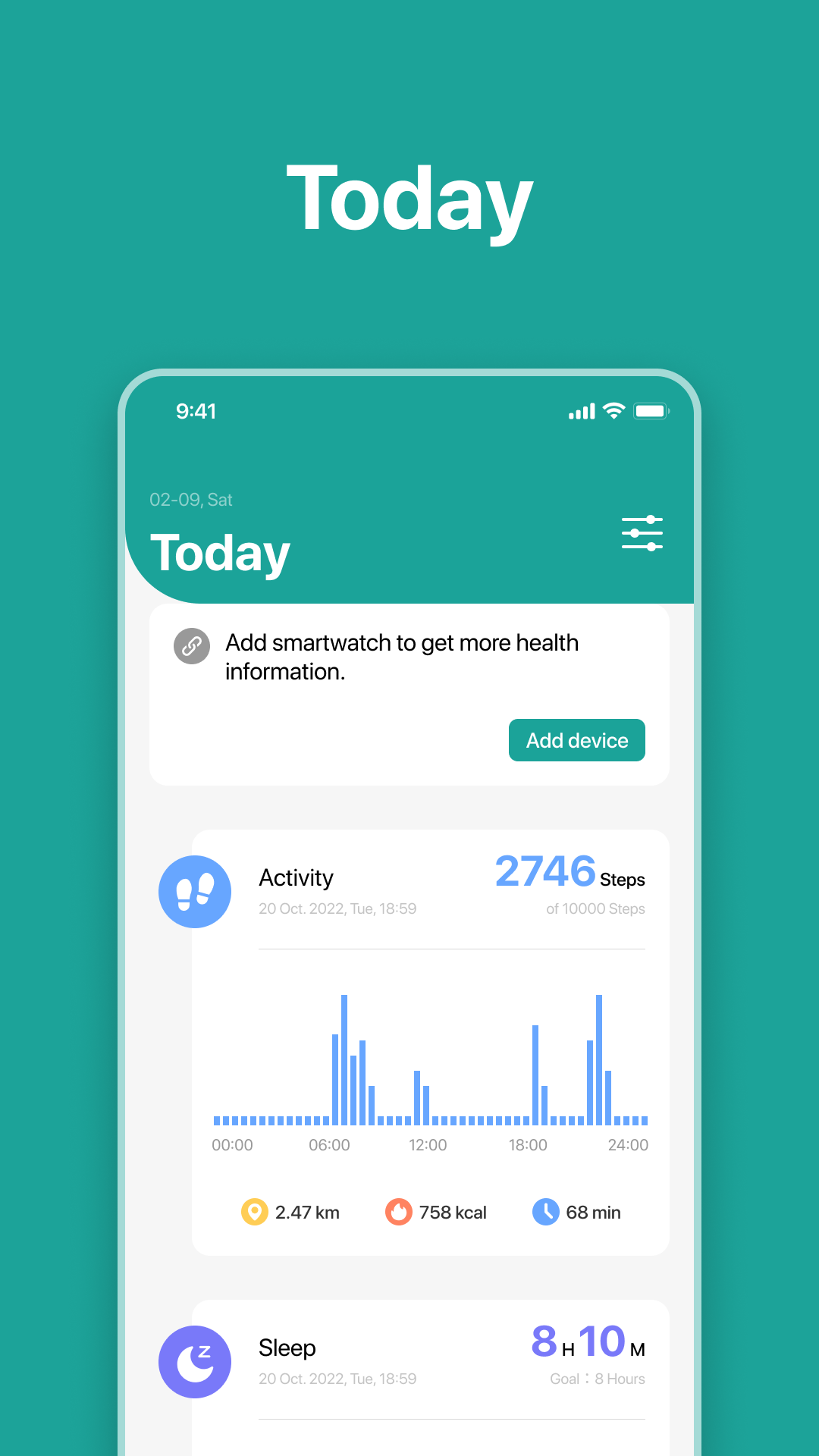 它可提供详细的步数和睡眠情况图表,涵盖日、周、月不同时段。
