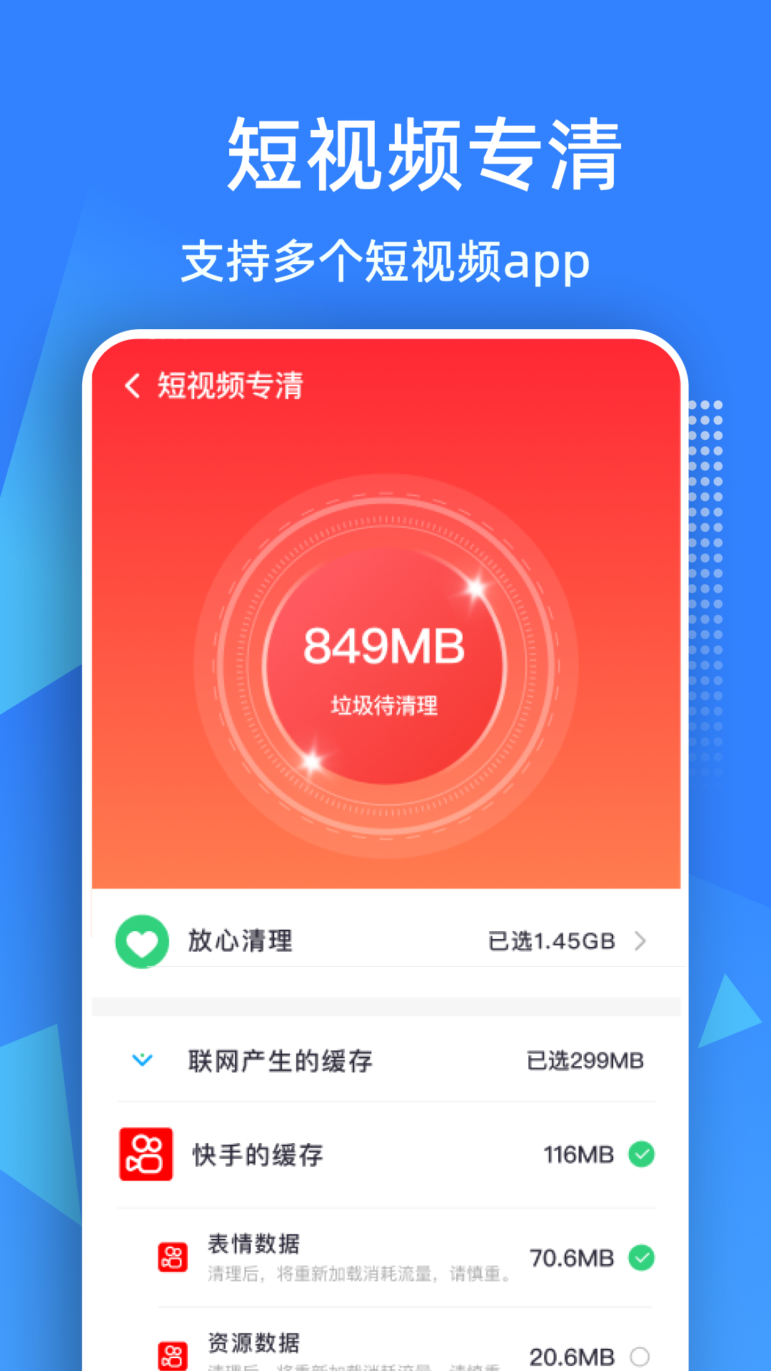 4.短视频清理:刷短视频过程中产生的缓存,碎片等清理