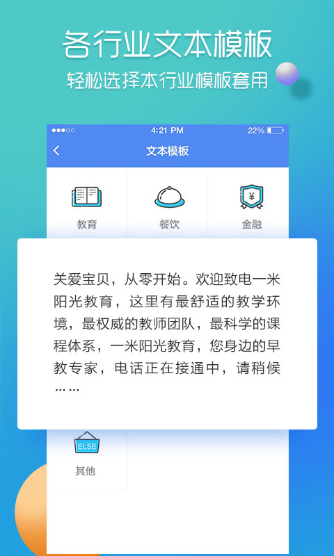 彩铃易是一款超棒的软件,它能让您在线试听企业集团彩铃、广告彩铃样音,还能在线设置企业彩铃、集团彩铃、商务彩铃,并且提供个性化彩铃定制服务。它具备智能合成配音功能,还有优质的真人配音,分类文案模版丰富多样,支持MP3格式的下载与分享。在这里,您能找到磁性稳重的大叔音、温柔知性的御姐音、甜美可爱的少女音,甚至独具特色的方言配音,各种声音类型应有尽有。此外,彩铃易还提供真人一站式配音服务,拥有专业的配音团队,售前售后服务完善,能够切实满足您的配音需求。通过彩铃易制作好的铃声无需前往营业厅人工办理,其系统会自动办理。