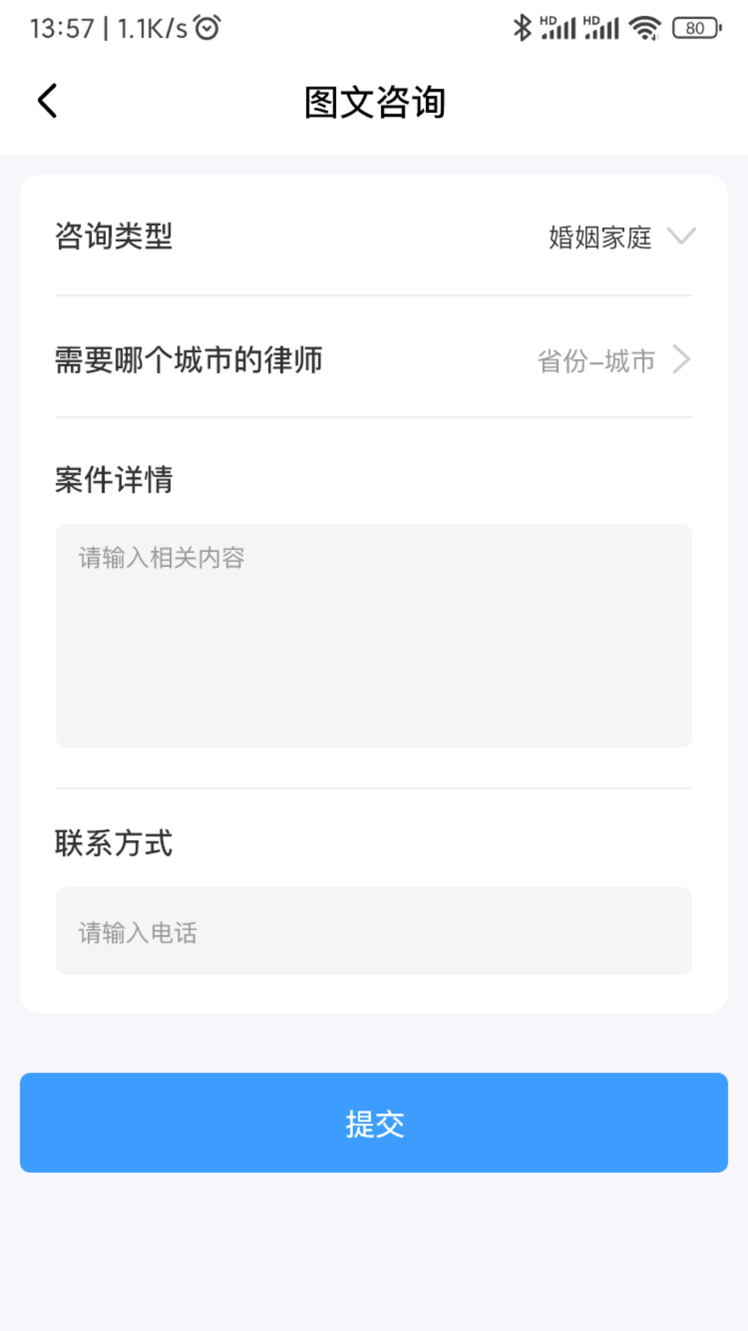 可24小时随时快速一键拨打咨询法律问题。解决了普法形式陈旧、法律援助受众窄、突破大众法律咨询盲点等问题,以移动“互联网+”为突破口,集成法律咨询、普法宣传、法律援助等一体化服务。用户通过客户端app就能快速找到合适律师,得到高效、专业、便捷、实惠的法律服务解决方案,真正解决百姓“用法难”的问题,实现让法律服务触手可及。