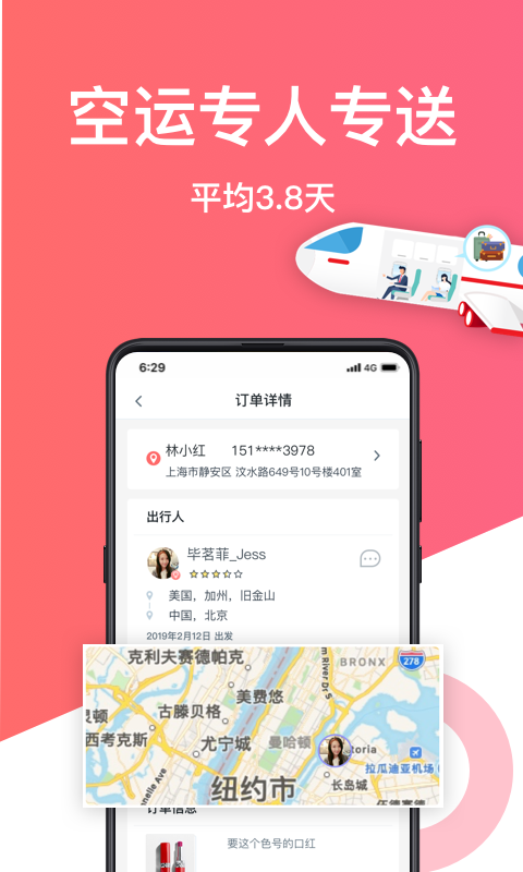 更高效。相对于国际转运繁琐复杂的流程,游箱的帮带功能相当高效。从出行人出行到物品抵达目的地国家通常只需要2-3天。寄件人可通过平台与出行人随时沟通,实时了解订单状态;